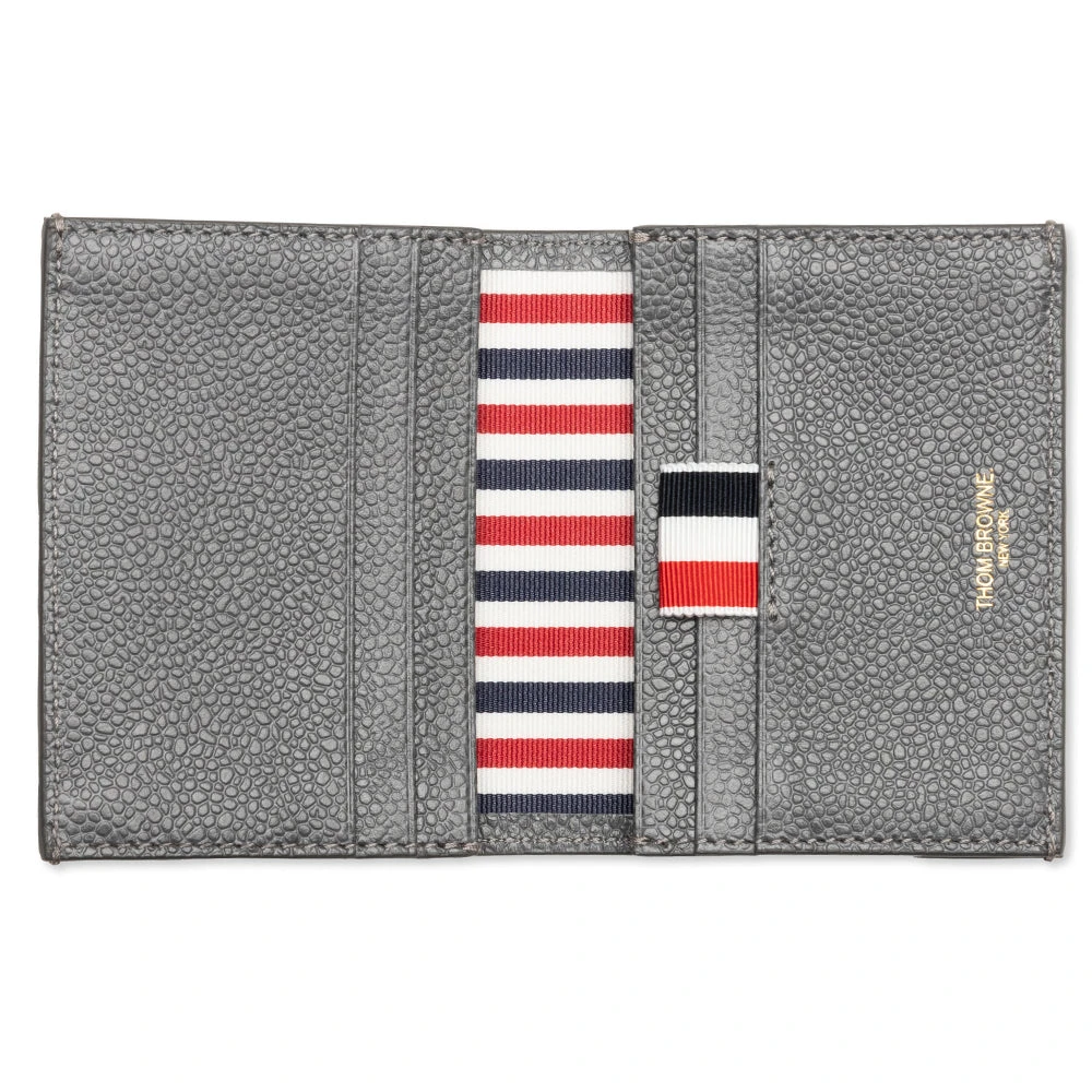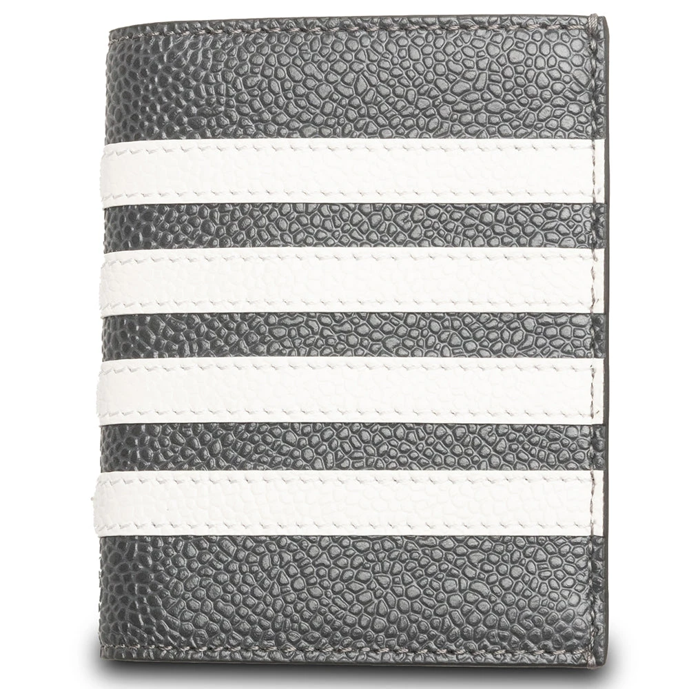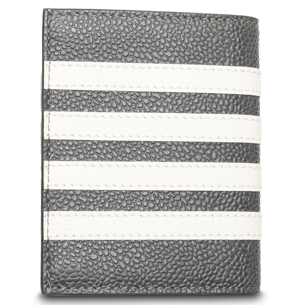The elevated stylings of Thom Browne can be seen within the 4 Bar Billfold which showcases its pebbled leather construction. A signature stripe applique can be seen along the outer fold while a 4 card compartment designs the inside for optimal use.