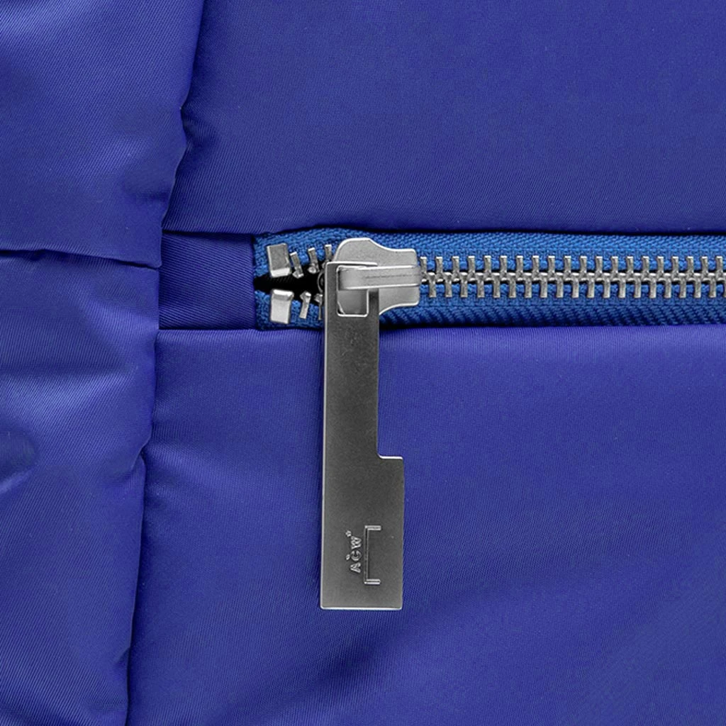 A-COLD-WALL* takes an ergonomic approach to design, combining a social consciousness with material innovation in order to optimize human performance – the material study for social architecture. Launched in 2015 by Samuel Ross as a response to the British social climate and its sartorial relationship, ACW* incites a cultural conversation that celebrates the energy of youth. Pictured is the A Cold Wall Nylon Puffer Bag in Blue.