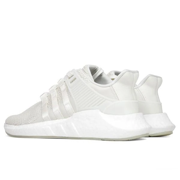 The EQT Support 93/17 draws inspiration from the classic design of the ’90s Equipment Support runner and utilizes premium materials to construct the uppers. The modern runner features Boost technology with TPU overlays wrap around the heel. Pictured is the Adidas Originals EQT Support 93/17 in Core Black/Flat White.