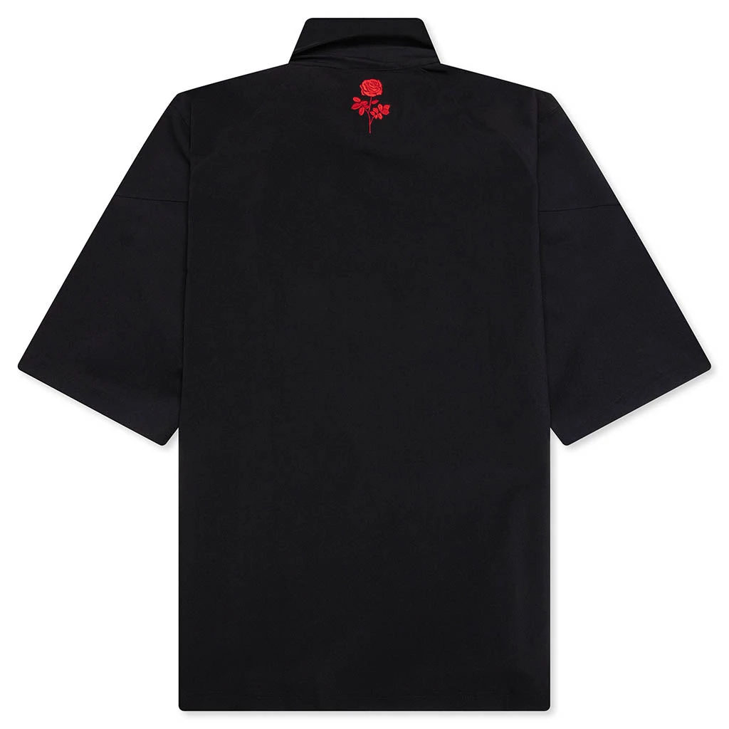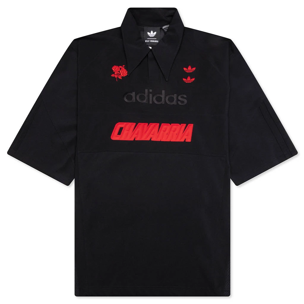Part of the Adidas Originals x Willy Chavarría collection, this Polo Shirt reimagines a classic silhouette through an expressive lens. Crafted from a nylon-blend fabric with mesh side panels for breathability, it features an oversized fit and structured polo collar with a two-button placket. Embroidered floral graphics adorn the front and back, while tri-stripe detailing at the sleeves completes the look with signature flair.