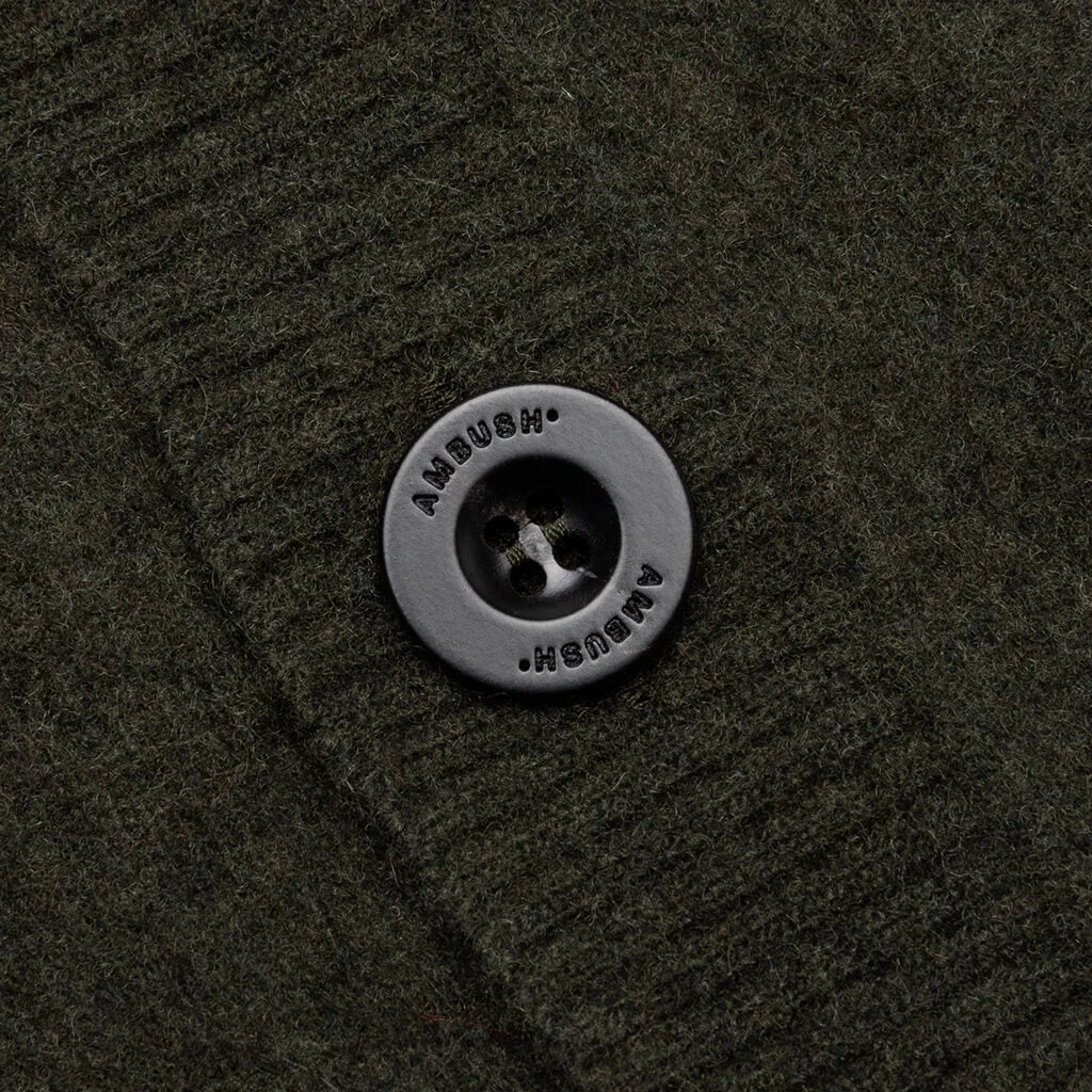Ambush’s modern and elegant taste is proudly displayed in the Logo Cardigan Knit. Its blend of high-quality materials provides a soft and comfortable fit. Cut for a loose look, the sweater is complete with knitted detailing.