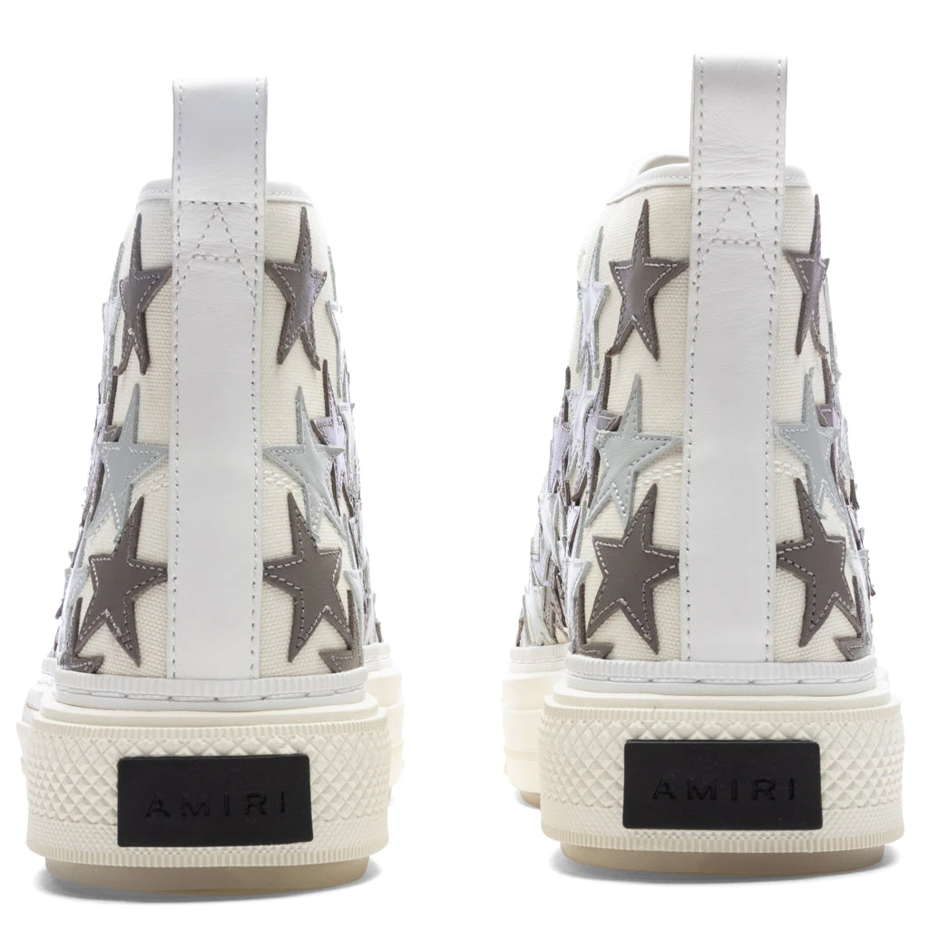 In a classic high-top silhouette, the Stars Court High is made with a cotton canvas in a clean and sleek construction with a lace-up closure. Constructed with a double-stack sole, the luxury brand Amiri elevates the everyday sneaker with leather appliqués in a star shape.