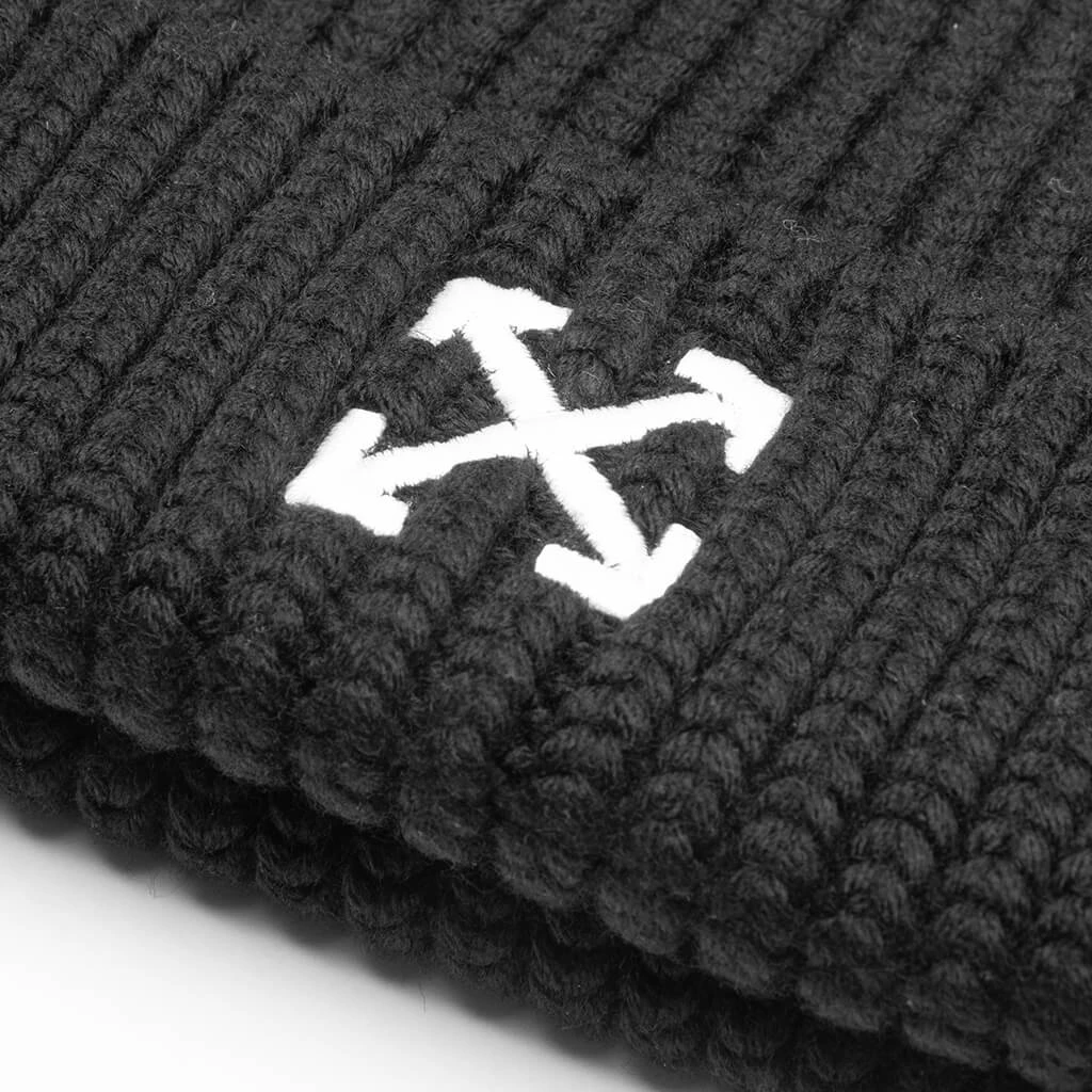 Composed of wool, the Off-White Arrow Beanie makes an impression with its premium aesthetic. The design spotlights a chunky ribbed knit construction, while the turned-up hem and embroidered arrows motif makes a statement.
