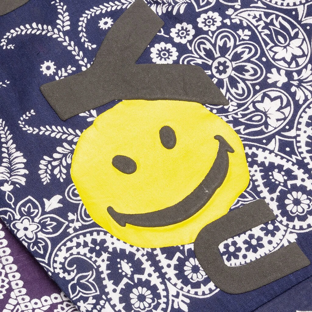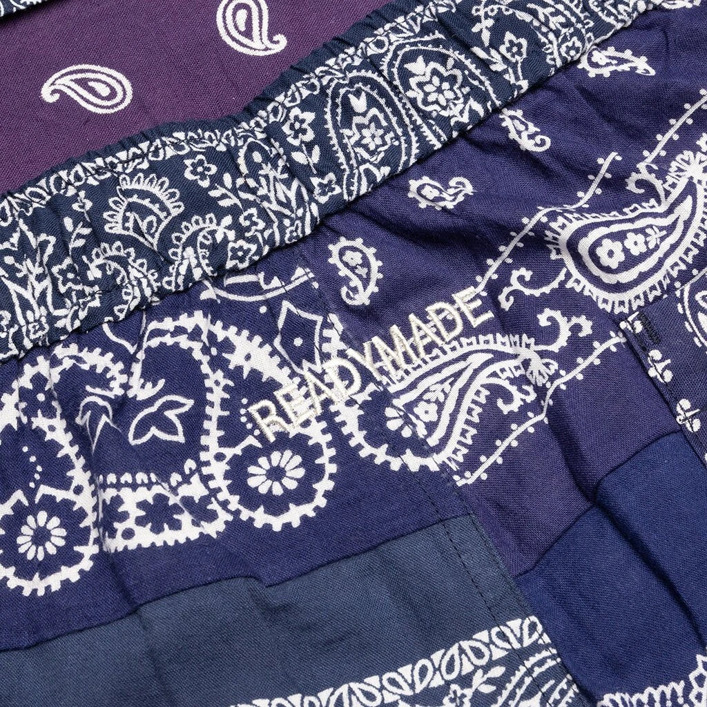 READYMADE was created in 2013 as the vision of designer Yuta Hosokawa. The brand’s theme was world peace. By upcycling military materials, Hosokawa thought turning items used for violence and death into items for pleasure would convey his wish for an end to all war. Pictured is the ReadyMade Bandana Sleeping Shirt in Navy.