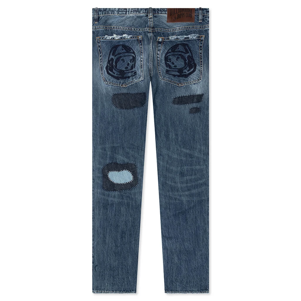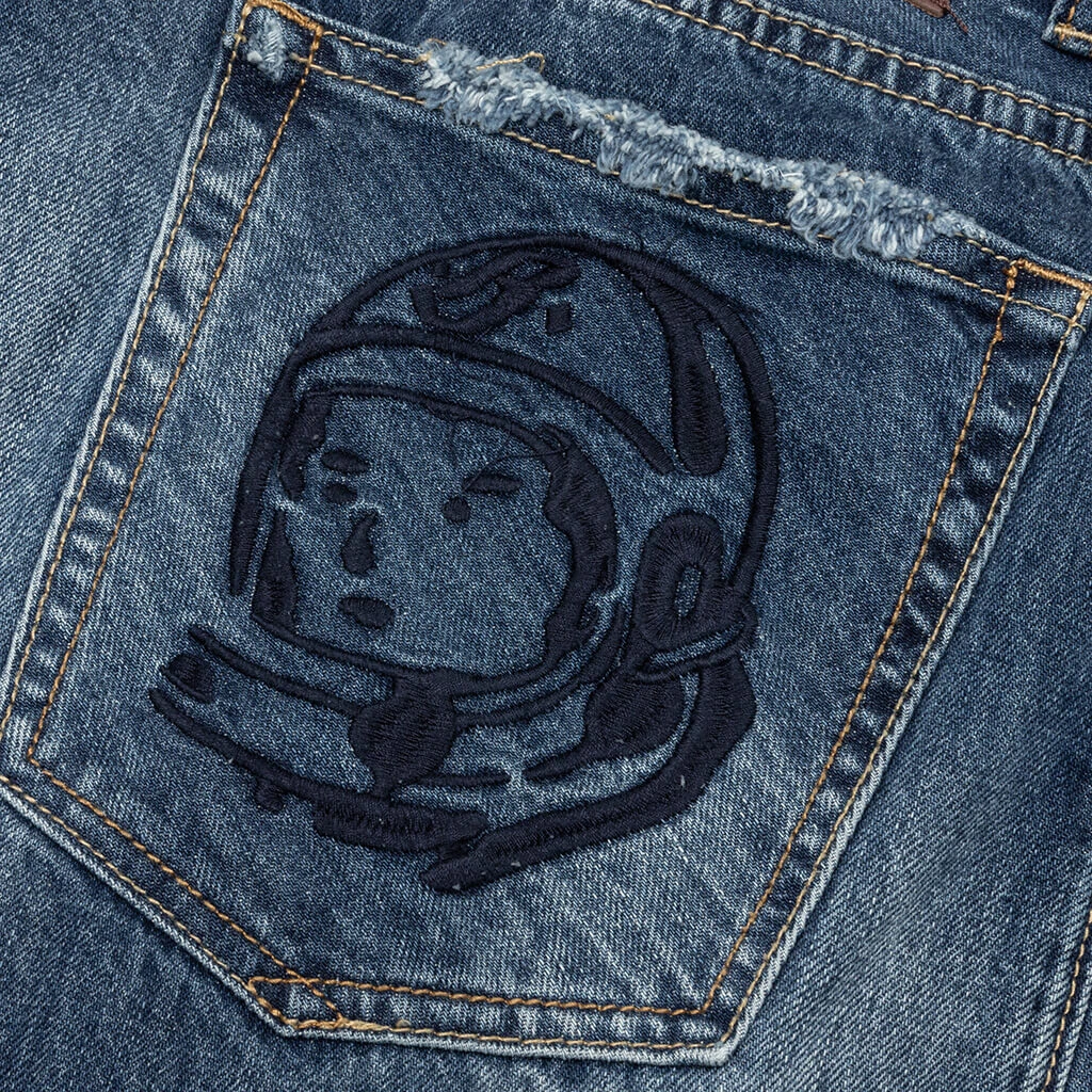 Upgrade your current go-to pair of jeans with the Half Moon Jeans from Billionaire Boys Club. Crafted entirely from cotton, the jeans feature a signature 5-pocket design along with a zip fly. Unique denim patchwork is placed at the front and rear, while embroidered astronaut motifs appear at the two rear pockets. Distressing is placed in a subtle manner at the ankle cuffs, while the leather branded patch at the rear makes an additional statement.