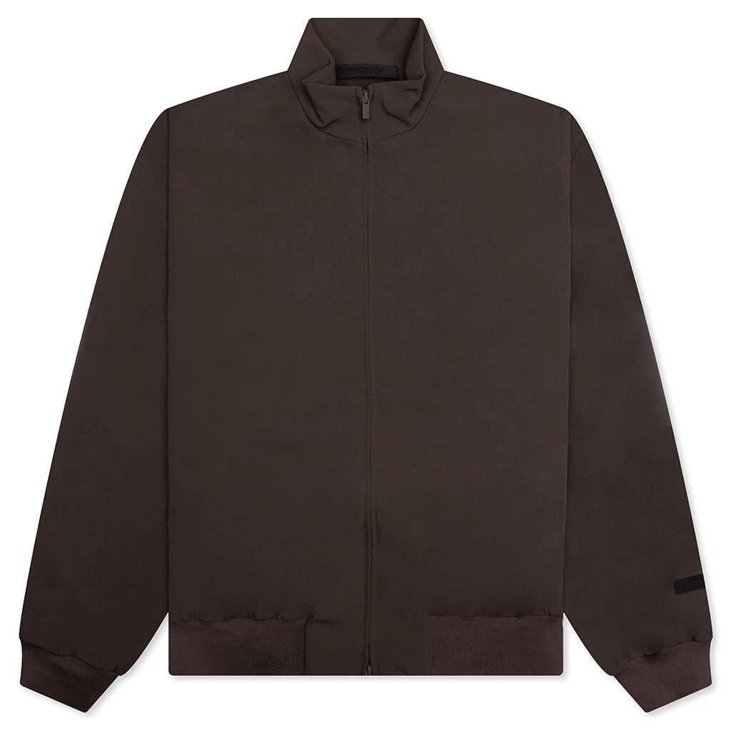 The Bonded Nylon Bomber Jacket in Brown combines durability with a sleek design. Made from a nylon-spandex blend with a polyester lining, this jacket offers flexibility and comfort. Contrast fabric adds texture, while the ripstop construction ensures long-lasting wear. Features include a front zipper closure and side seam pockets for a functional and modern look, making it an ideal addition to your outerwear rotation.