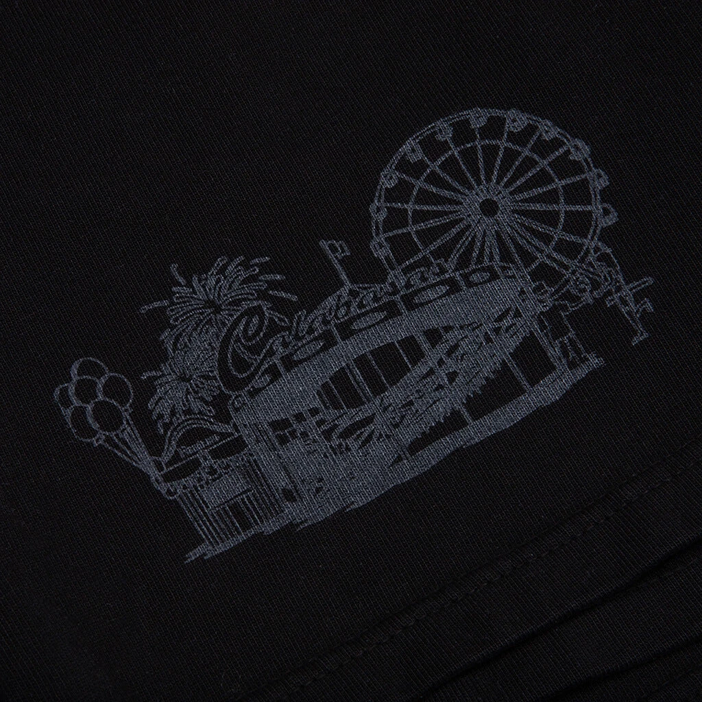 Our latest graphic featured in the Calabasas Chapter Capsule is our FEATURE Carnival Shorts. The shorts seen in black feature a screen-printed FEATURE academy branding and a carnival-inspired graphic on the other leg, nodding to our Calabasas location’s heritage.