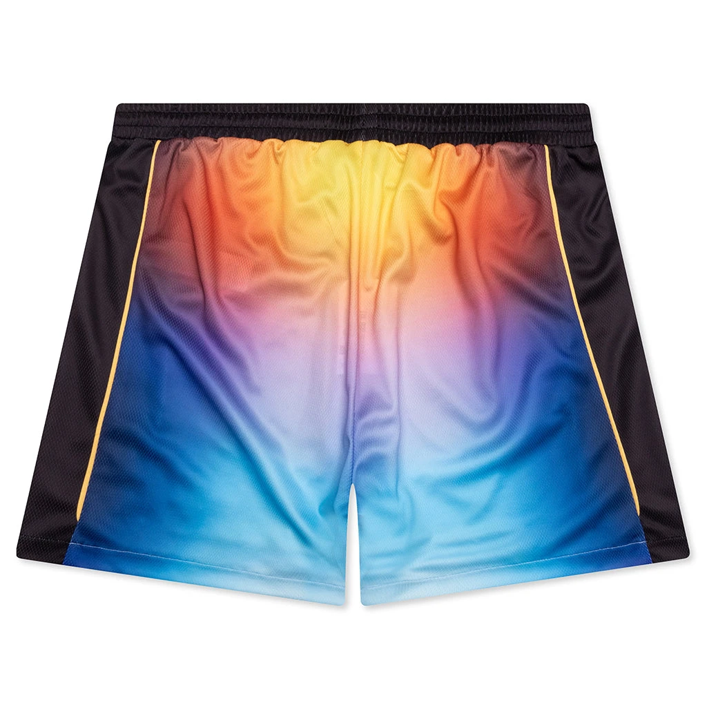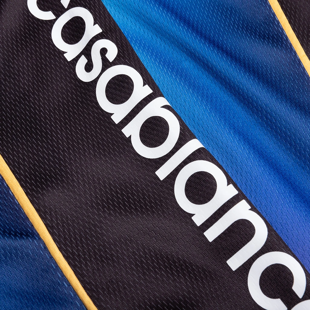 The Printed Football Shorts are a sportswear design crafted from a gradient-printed fabric incorporating the house’s signature Casablanca logo down the side. The shorts are completed with an elasticated waistband with a drawstring fastening and in-seam side pockets.