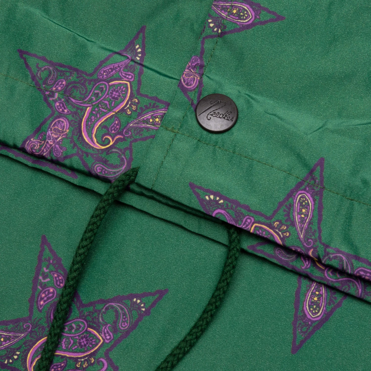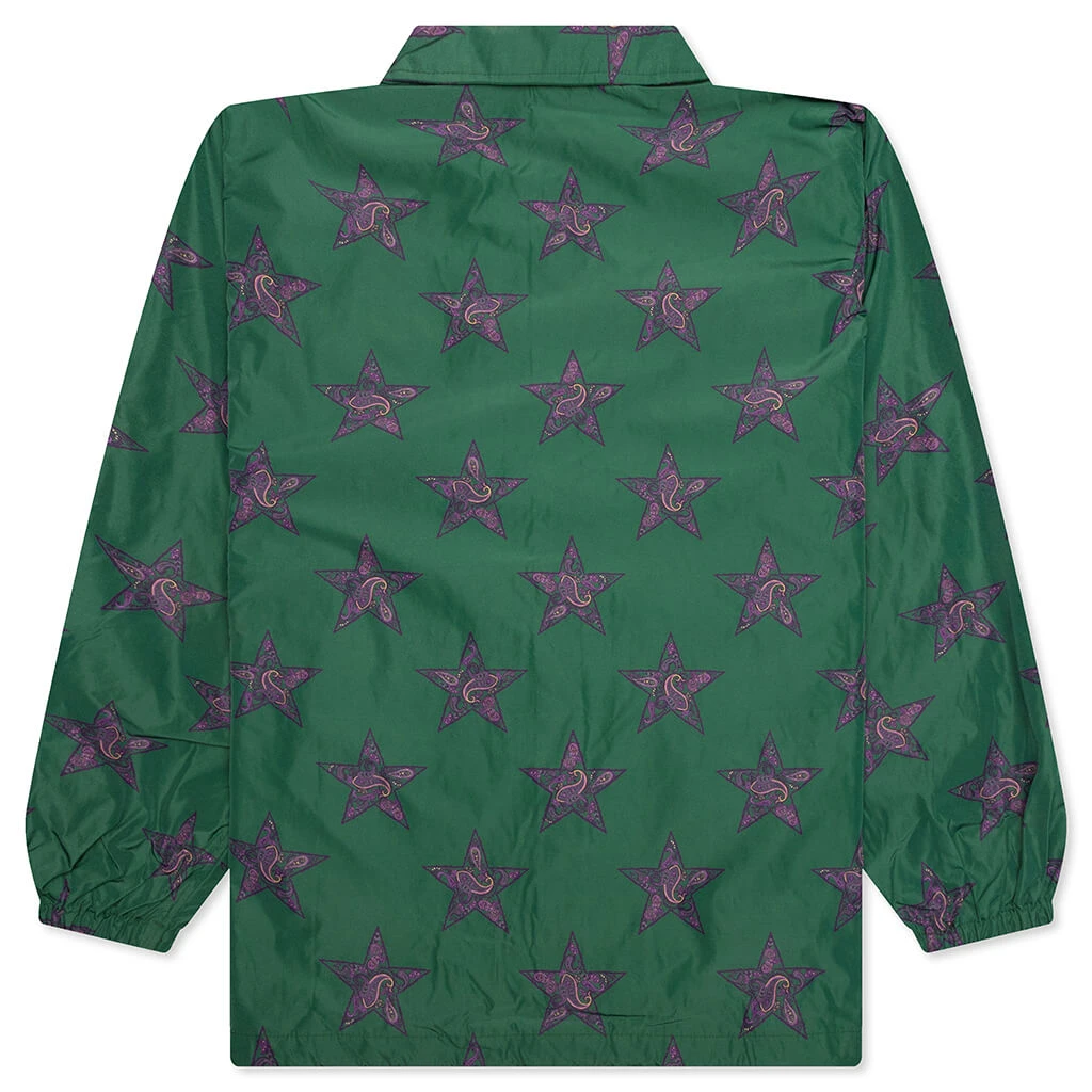 The Coach Jacket from Needles is the brand’s latest release. Composed of polyester, this wind-breaker style silhouette features a purple star print atop the green base. Technical details include a full button closure, a classic collar, and comfortable hand pockets. The look is completed with elastic cuffs and a drawstring hem.