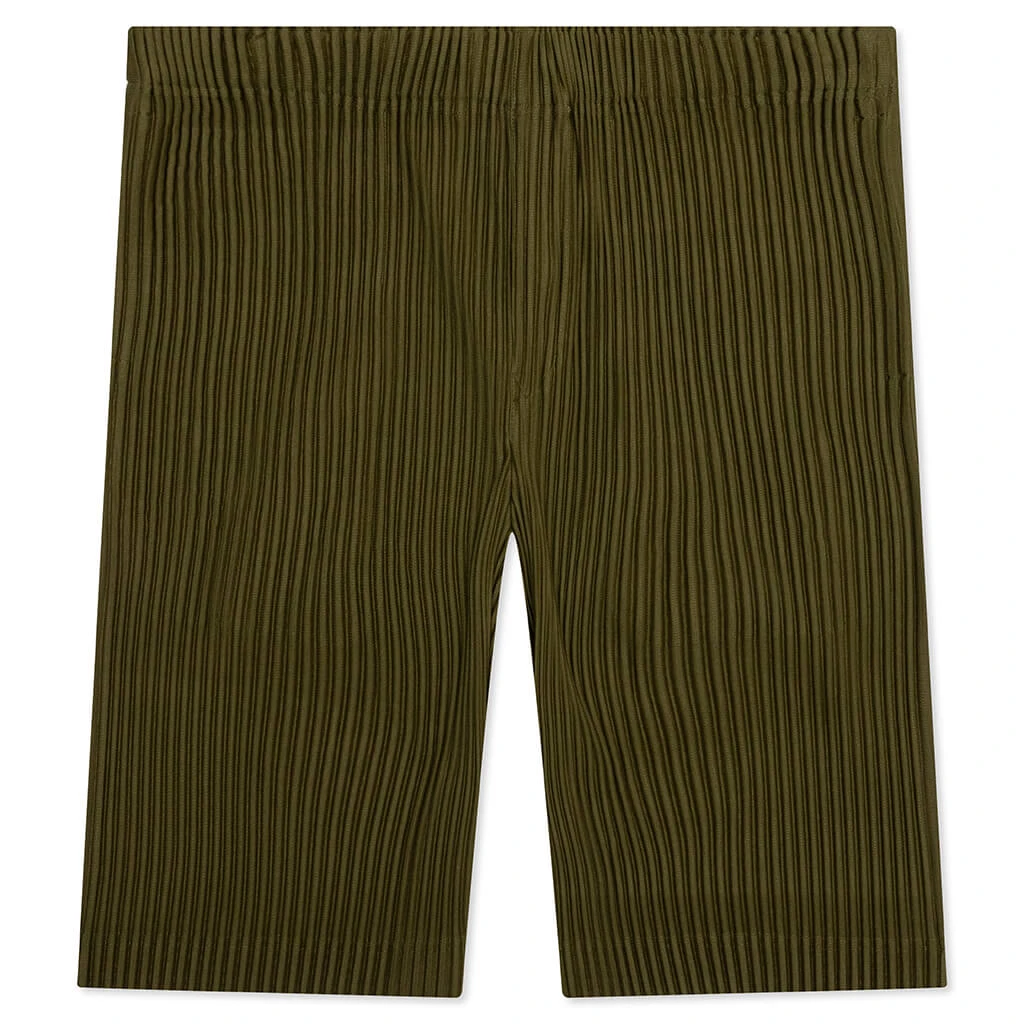 The Color Pleats Shorts in Olive Khaki reflect Homme Plissé Issey Miyake’s signature balance of structure and ease. Made in Japan from lightweight, quick-drying polyester, they feature the brand’s iconic pleated fabric for flexibility and form. A button-fly opening, inner drawcord, and sporty silhouette make them ideal for warm-weather styling with a refined edge.