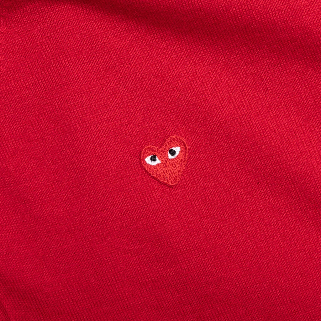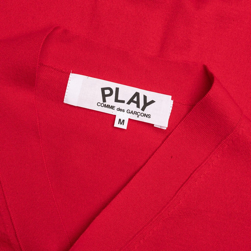 The concept of the Comme des Garcons PLAY line is design by not designing. Characterized by the iconic red heart logo designed by artist Filip Pagowski, the line is a collection of unisex basics, fragrances, and footwear for those who enjoy simplicity. Pictured is the Comme des Garcons PLAY Little Red Heart Cardigan in Grey.
