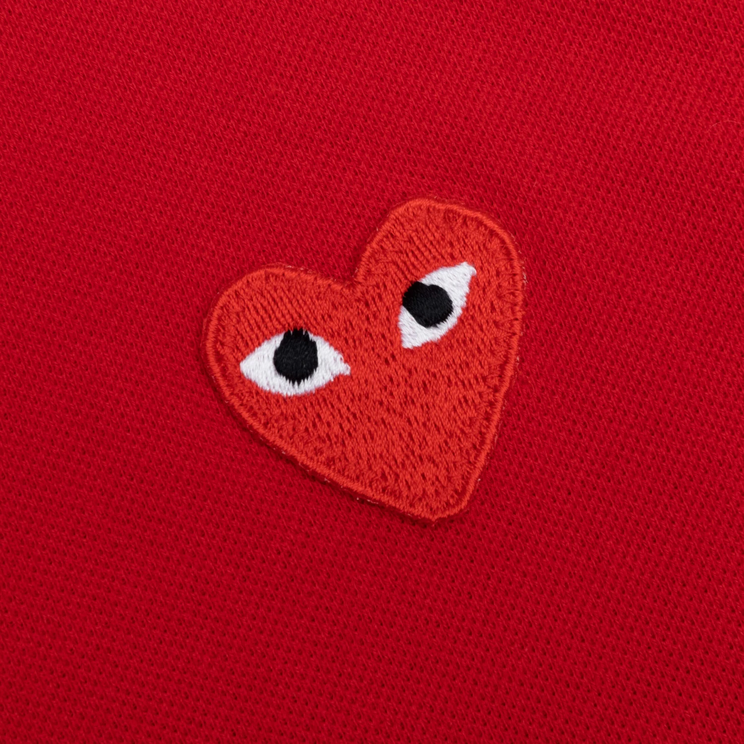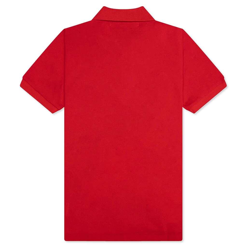 The Comme des Garçons PLAY Women’s Red Emblem Polo Tee makes an impression on any outfit. Cut from cotton, the design spotlights a pointed collar along with a quarter button placket for added functionality. An embroidered heart motif at the chest wraps up the look.