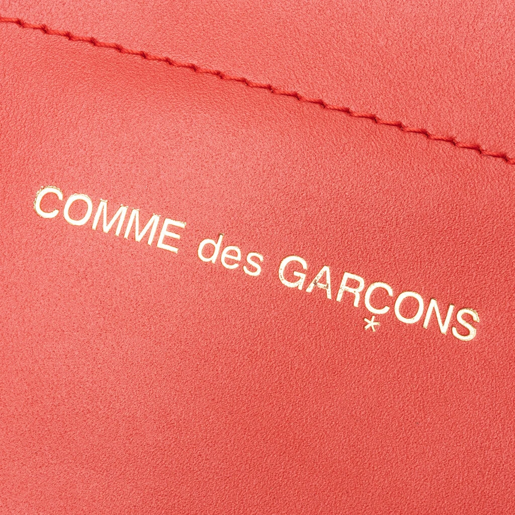 Comme des Garçons’ Wallet collection samples the iconic Japanese aesthetic of their main label while maintaining high quality leather and intricate details throughout their range of wallets and coin pouches. Pictured is the Comme des Garcons Wallet SA9001HL Tote Bag in Red.