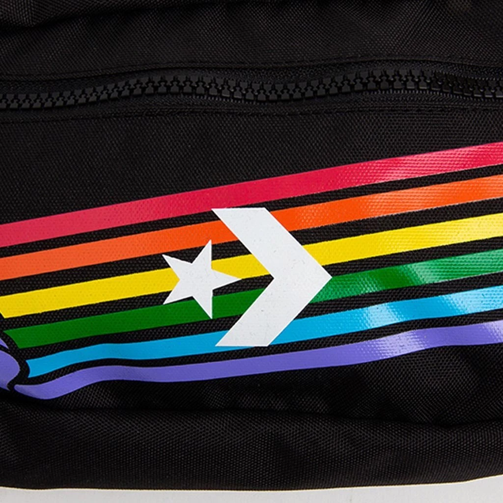 2019 marks the 50th anniversary of the first pride parade. For this years collection Converse utilizes a lightning bolt. A symbol of strength, power and energy as a nod to our heroes who were brave enough to be themselves, to rebel against social norms, and to resist inequality. Pictured is the Converse Pride Hip Pack in Black/Pride.