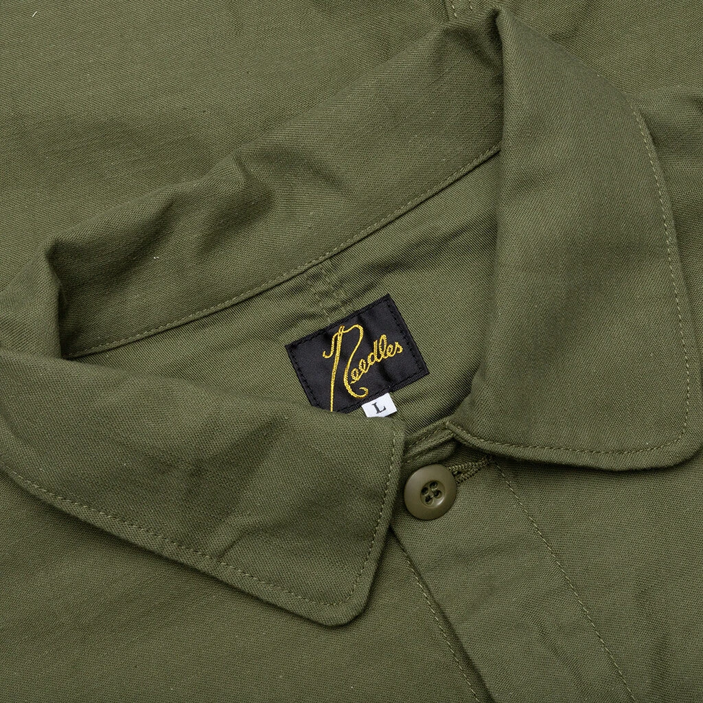 The Needles D.N. Coverall Back Sateen makes an impression on any apparel collection. The cotton-cut silhouette features a button closure along with front pockets. The embroidered papillon graphic makes an impression, while the pointed collar wraps up the design.