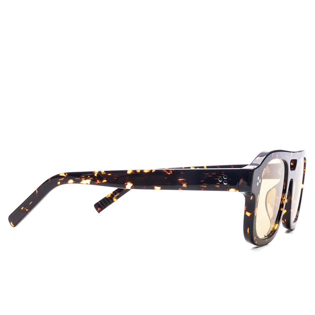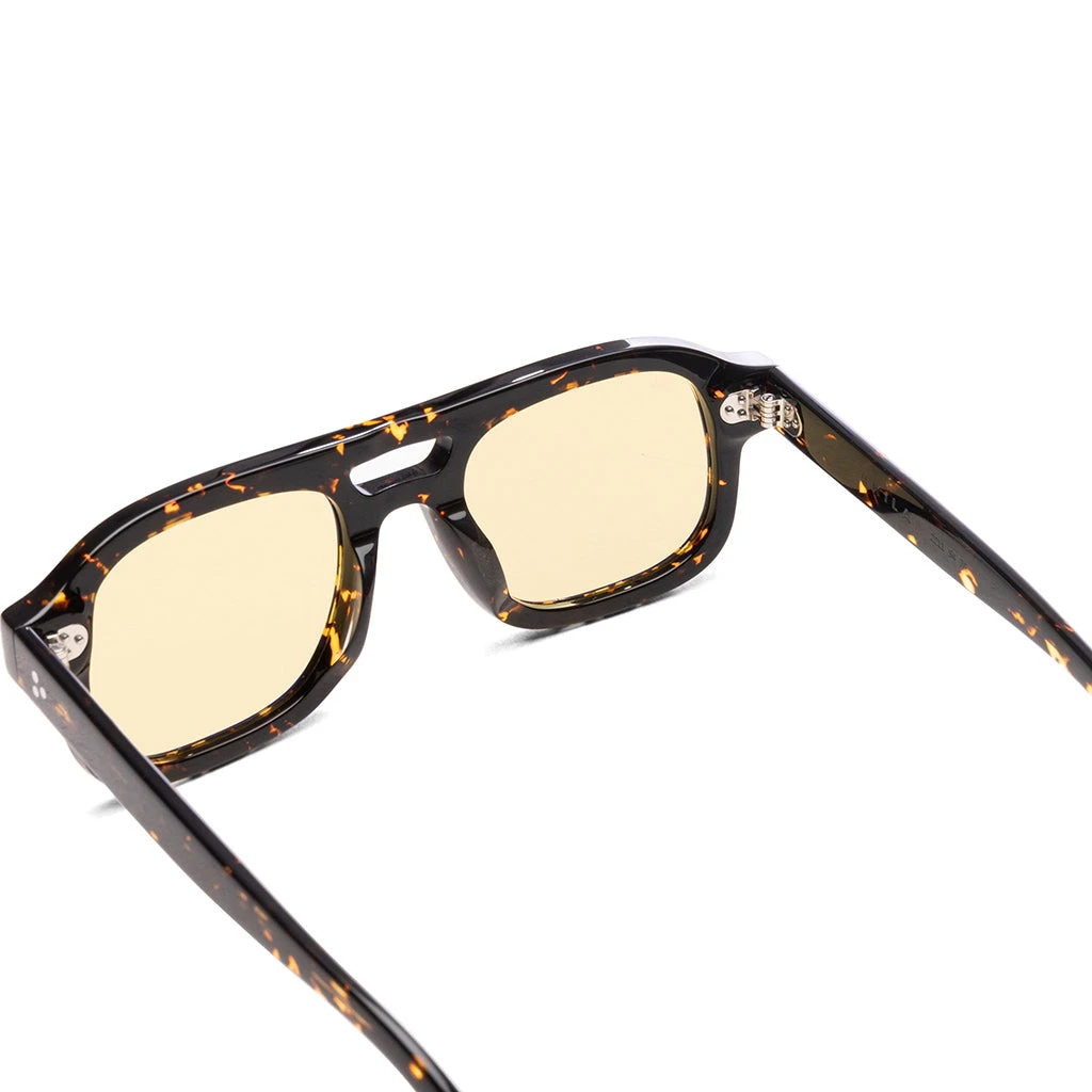 The Dillinger by Akila brings a bold, 70s-inspired aviator silhouette to modern eyewear. Crafted with signature 3-pin rivets and tinted yellow lenses, the frame makes a confident statement while maintaining timeless appeal. As with all pieces from the Los Angeles-based label, the design reflects Akila’s commitment to sustainability and thoughtful construction.