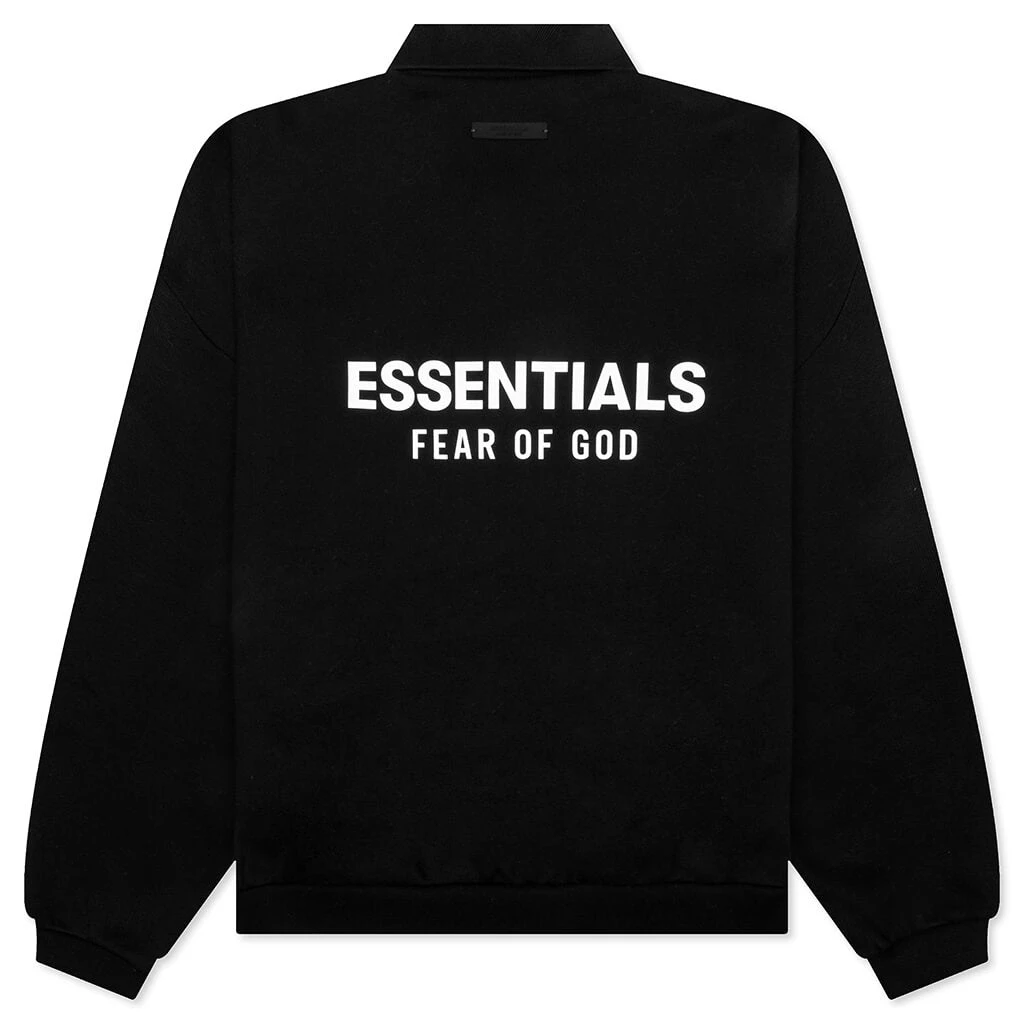 The Fleece Polo in Black combines classic styling with modern comfort. Made from a soft cotton-polyester blend, this polo features a rib-knit spread collar, hem, and cuffs for a polished finish. A single-button placket adds a refined detail, while the bonded logo at the chest and back provides subtle branding. Dropped shoulders and a rubber logo patch at the back collar complete the design, offering a contemporary twist on a timeless silhouette.