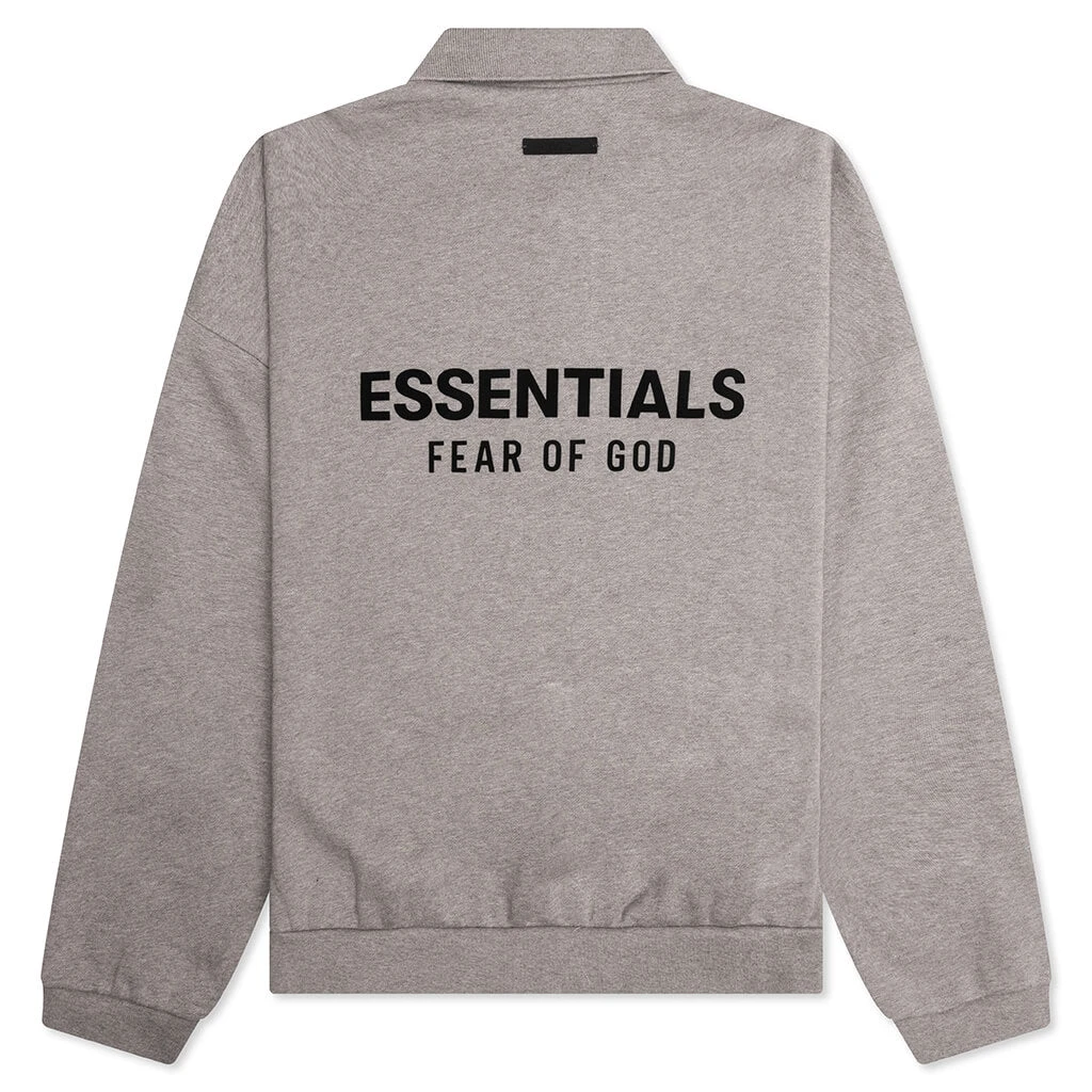 The Fleece Polo in Heather Gray combines classic styling with modern comfort. Made from a soft cotton-polyester blend, this polo features a rib-knit spread collar, hem, and cuffs for a polished finish. A single-button placket adds a refined detail, while the bonded logo at the chest and back provides subtle branding. Dropped shoulders and a rubber logo patch at the back collar complete the design, offering a contemporary twist on a timeless silhouette.
