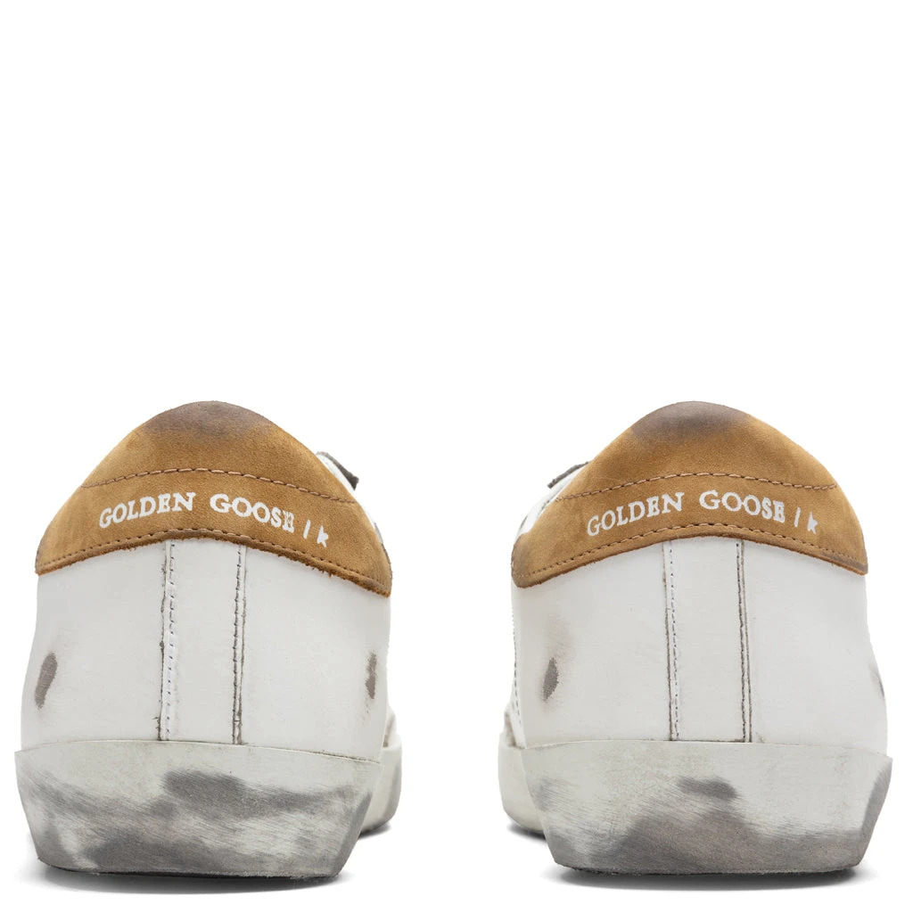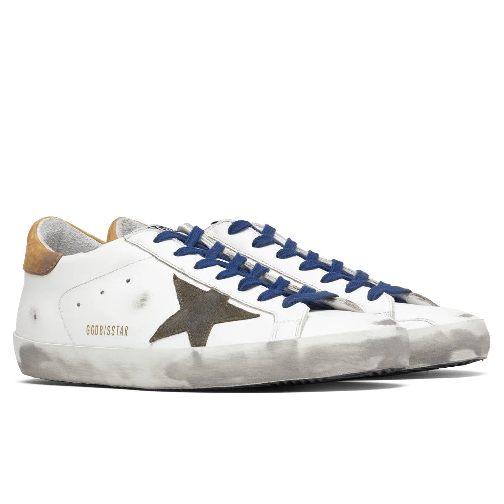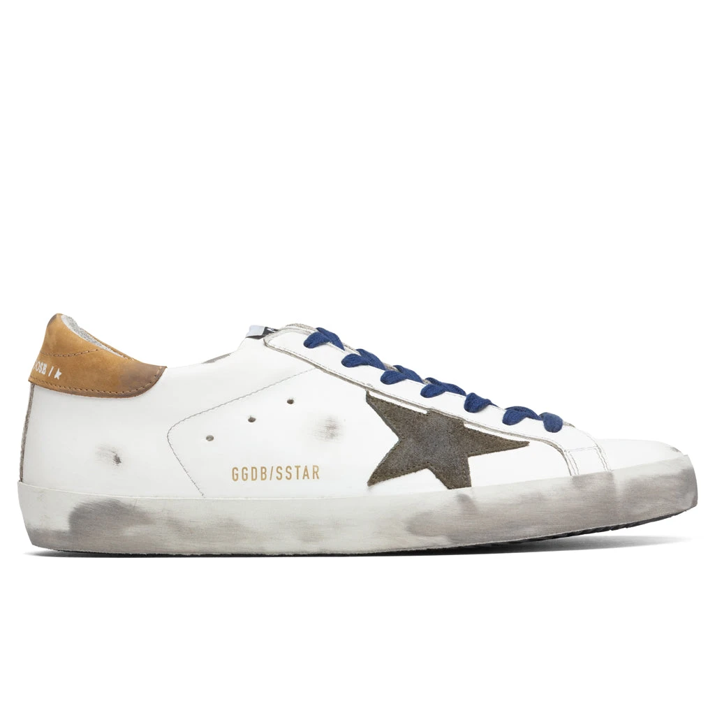 Established in 2000 from the minds of Italian couple Alessandro Gallo and Francesca Rinaldo, the Golden Goose brand was founded. The brand’s name itself is comprised of its affinity to luck with a direct inspiration from “The Goose that Laid Golden Eggs” tale. Their shoes captivate the essence of West Coast skateboarding with luxurious Italian craftsmanship. Pictured is the Golden Goose Superstar Leather Upper Suede Star Nabuk Heel in White/Drill Green/Brown