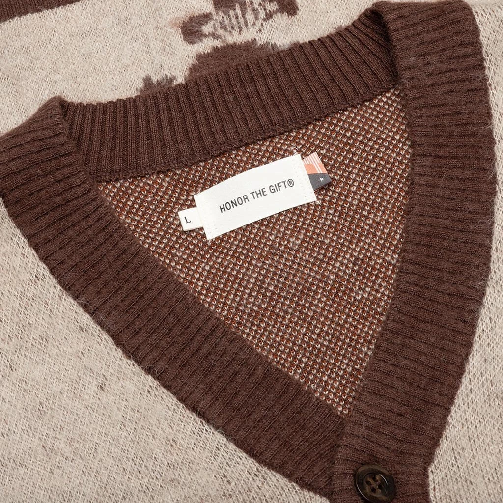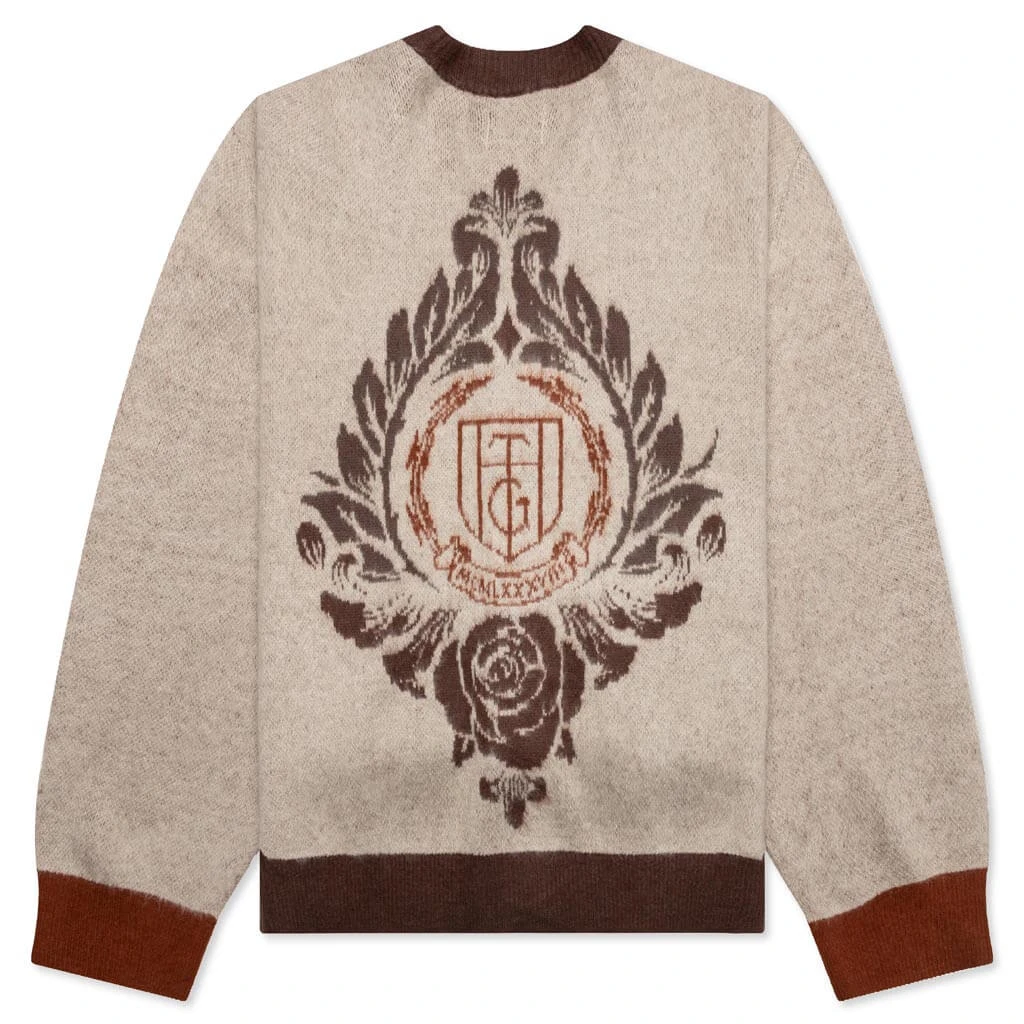 A classic cardigan crafted from a wool material, featuring two large front pockets and contrast details for a unique knitwear option to keep in your rotation. Designed with a button-front closure and custom embroidered crest on the chest and back.