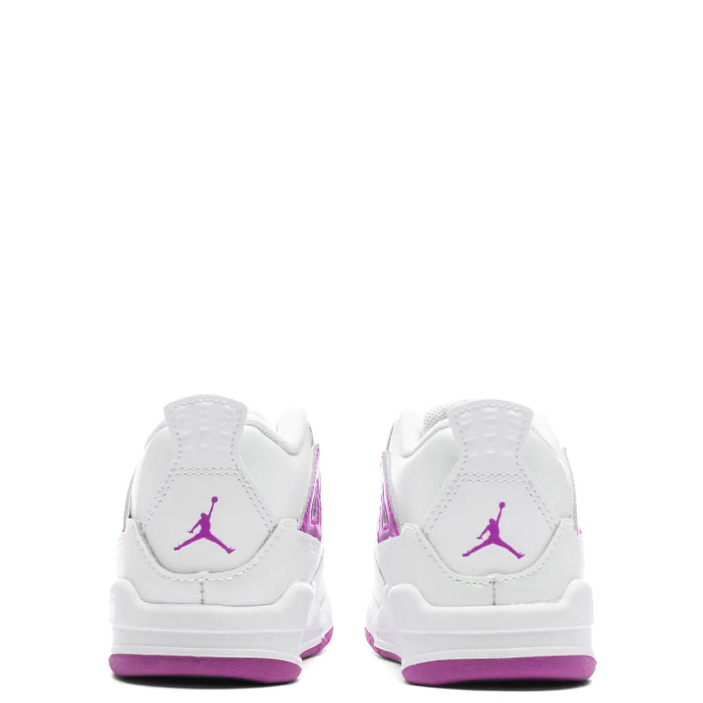 Embrace vibrant style with the Air Jordan 4 TD “Hyper Violet”. This sneaker features a clean white leather base with mesh netting, highlighted by bold hyper violet accents on the Jumpman branding, eyelet tabs, and tongue lining. The dynamic outsole adds an energetic vibe, while Nike Air cushioning in the sole provides enhanced comfort and impact protection. The Air Jordan 4 TD “Hyper Violet” combines standout style with performance, making it perfect for those looking to make a statement.