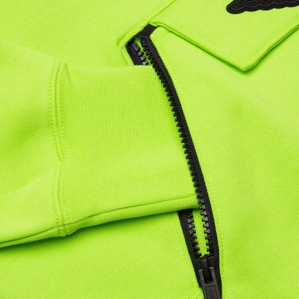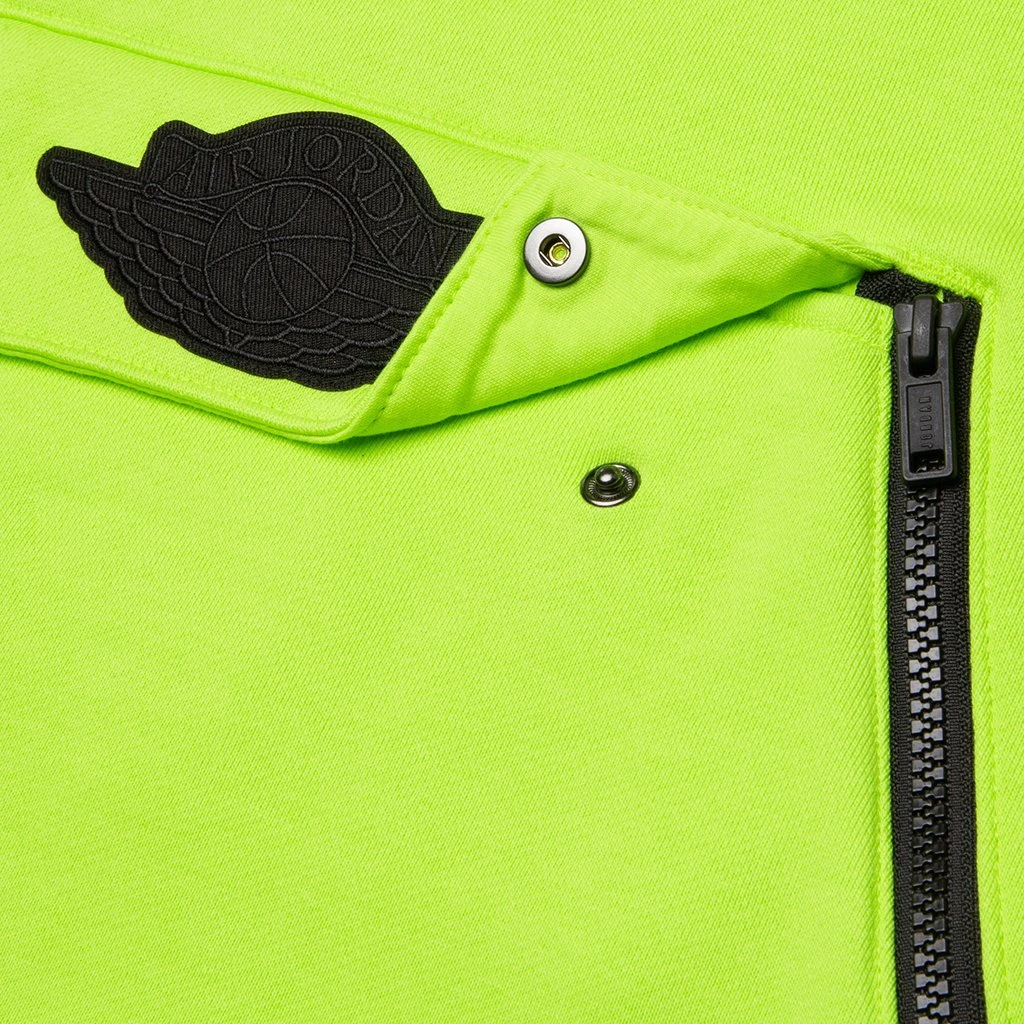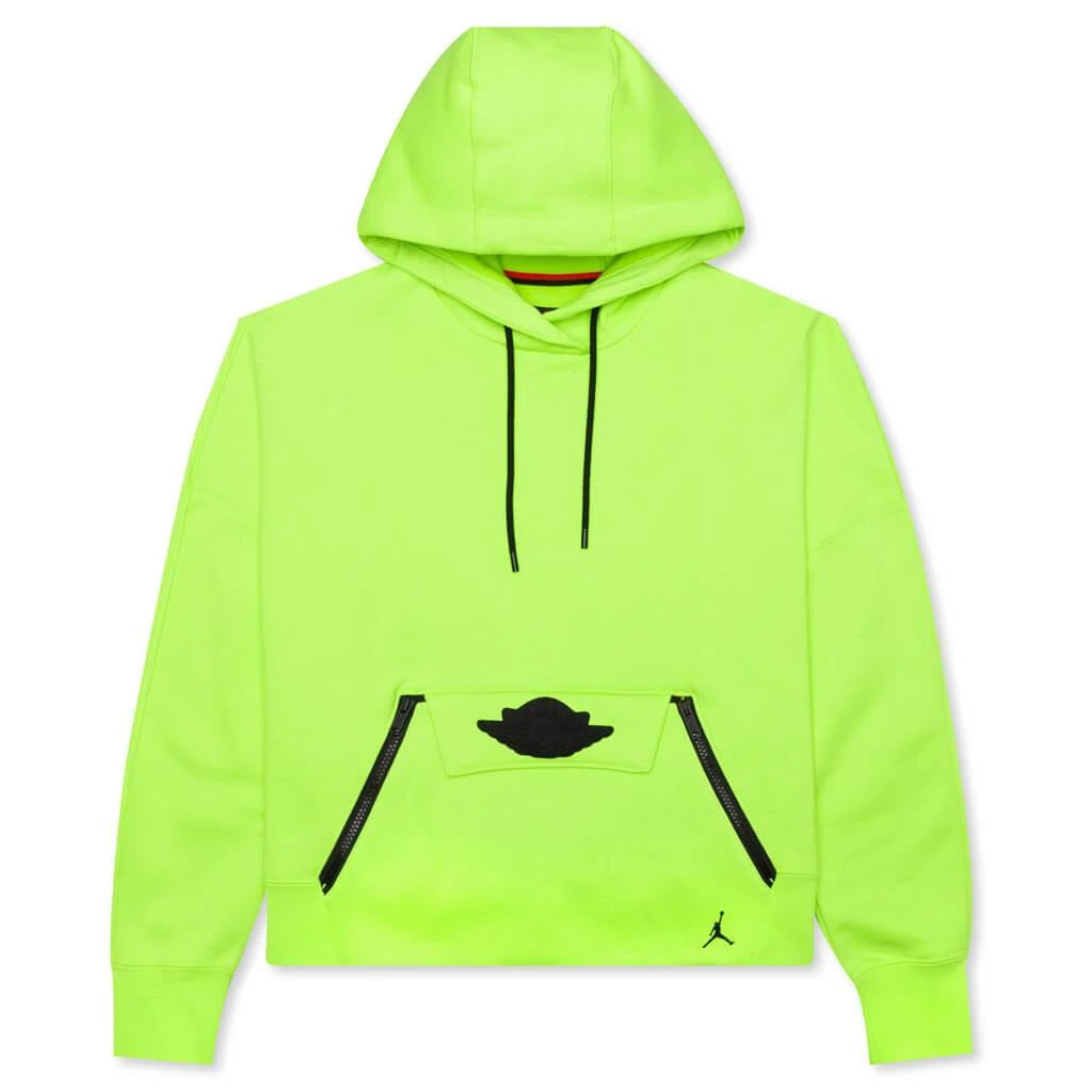 Functional yet stylish this hoodie provides comfort and all the latest technology Jordan brand has to offer. Pictured is the Jordan Women’s Fleece Hoodie in Cyber/Black/Black.