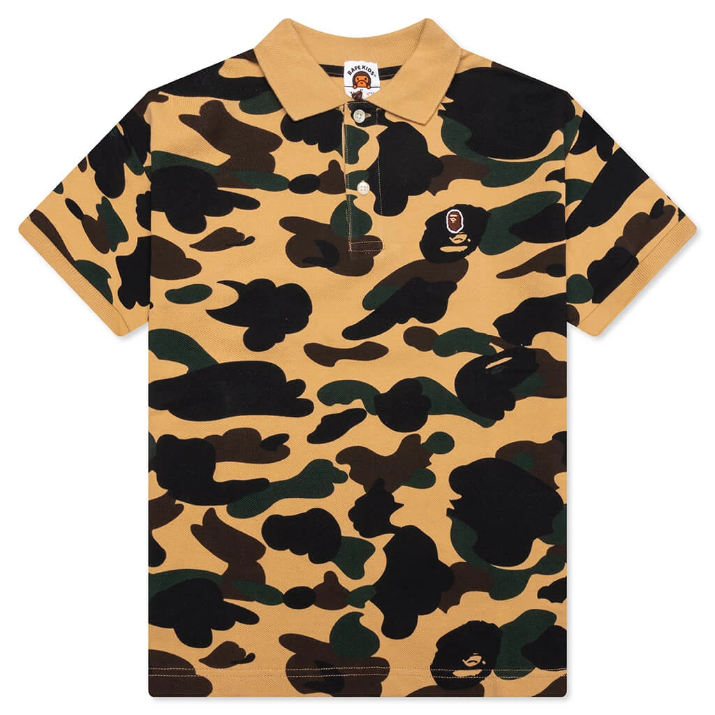 The Kid’s 1ST Camo Polo is crafted from 100% cotton. Designed with a classic collar and button placket, the polo is adorned in a camo pattern. Finished with a embroidered BAPE logo on the chest and a woven label tag for authenticity.
