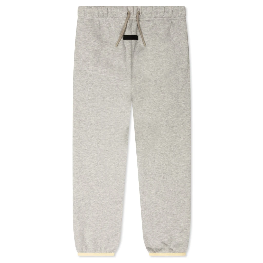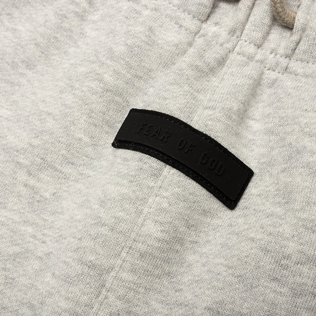The Fear of God Kid’s Essentials Sweatpants are made in core fleece with a relaxed seat and leg for a comfortable drape. Additional details include an encased elastic waistband with elongated drawstrings, side seam pockets, and a new elastic ankle hem finished in a stretch binding. A Fear of God rubberized label is at the center front that completes the design.