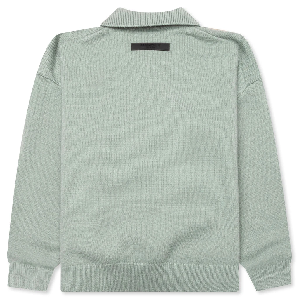 Taking on a blend of polyester and nylon, the polo features a jacquard ‘E’ at the front. A single button placket and a rubberized label makes a statement. Rib-knit detailing at the collar, cuffs, and hem provide additional detailing.