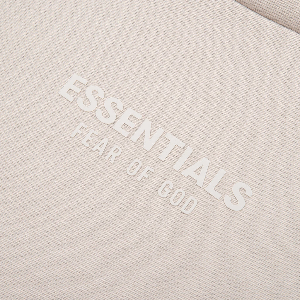 The Fear of God Essentials Kid’s hoodie provides volume in the body and sleeves to create a soft, round + cropped silhouette. A mock neckline and side seam pockets provide functionality. The Essentials Fear of God logo is sized subtly at the center front in a rubberized soft-touch appliqué, and a Fear of God rubberized label is on the hood that finishes off the design.