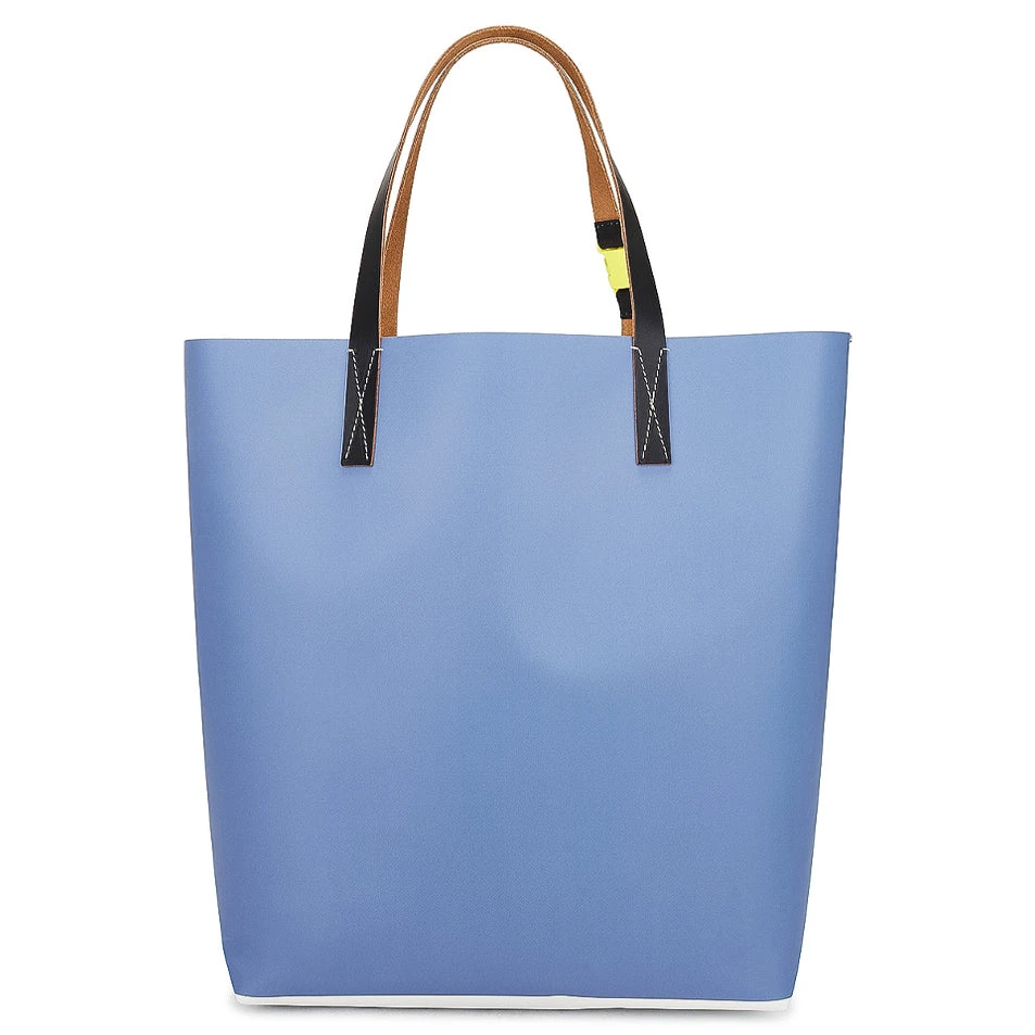 The Marni Tribeca Shopping Bag in multi is a statement piece designed for both style and functionality. Made from a durable polyurethane and polyester blend, it combines strength with a sleek, modern look. The leather handles add a touch of sophistication, while the neon plastic buckle provides a bold contrast. Finished with a screen-printed Marni logo, this bag is perfect for carrying your essentials in style.