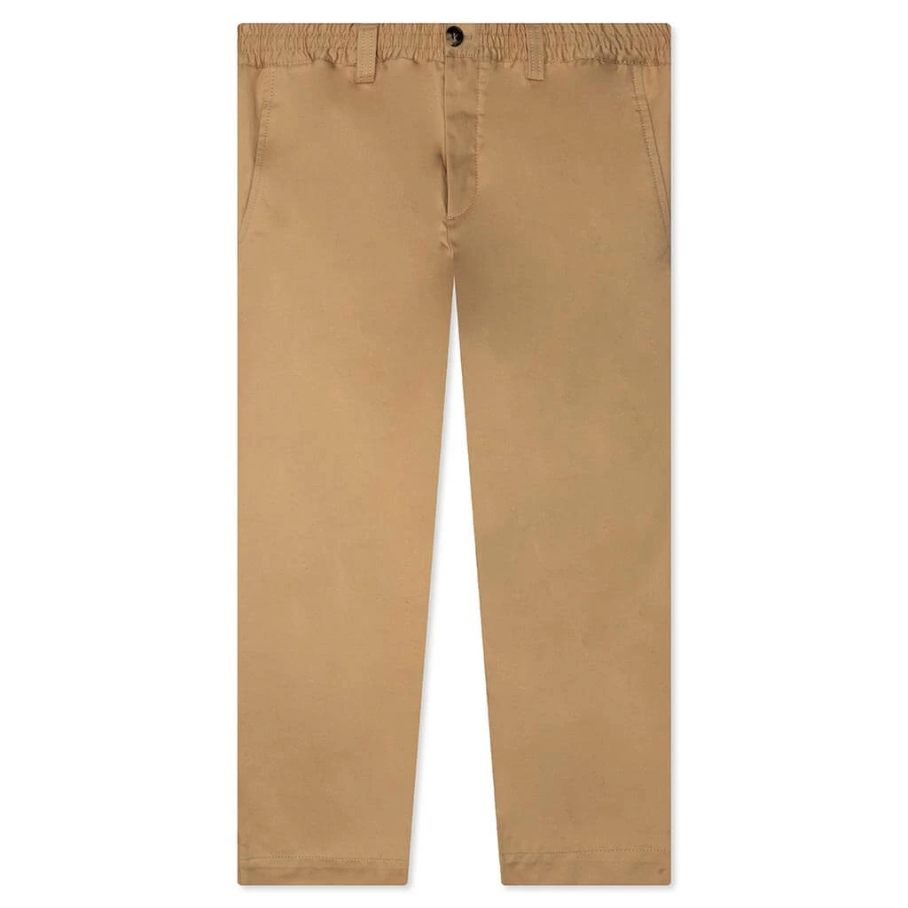 A luxury, heavyweight canvas material takes on a casual silhouette with an elasticized drawstring waist and a zip-fly button closure. Made with a four pocket design and a regular fit. Custom Marni buttons are used for the back pockets and closure, and constructed with a straight fit.