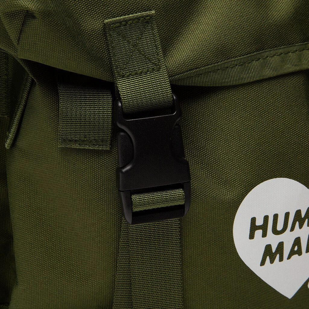 Human Made is the latest venture from BAPE founder, Nigo. The vintage inspired label offers an exclusive range of apparel and accessories focusing on quality and authenticity. Pictured is the Human Made Military Rucksack in Olive.