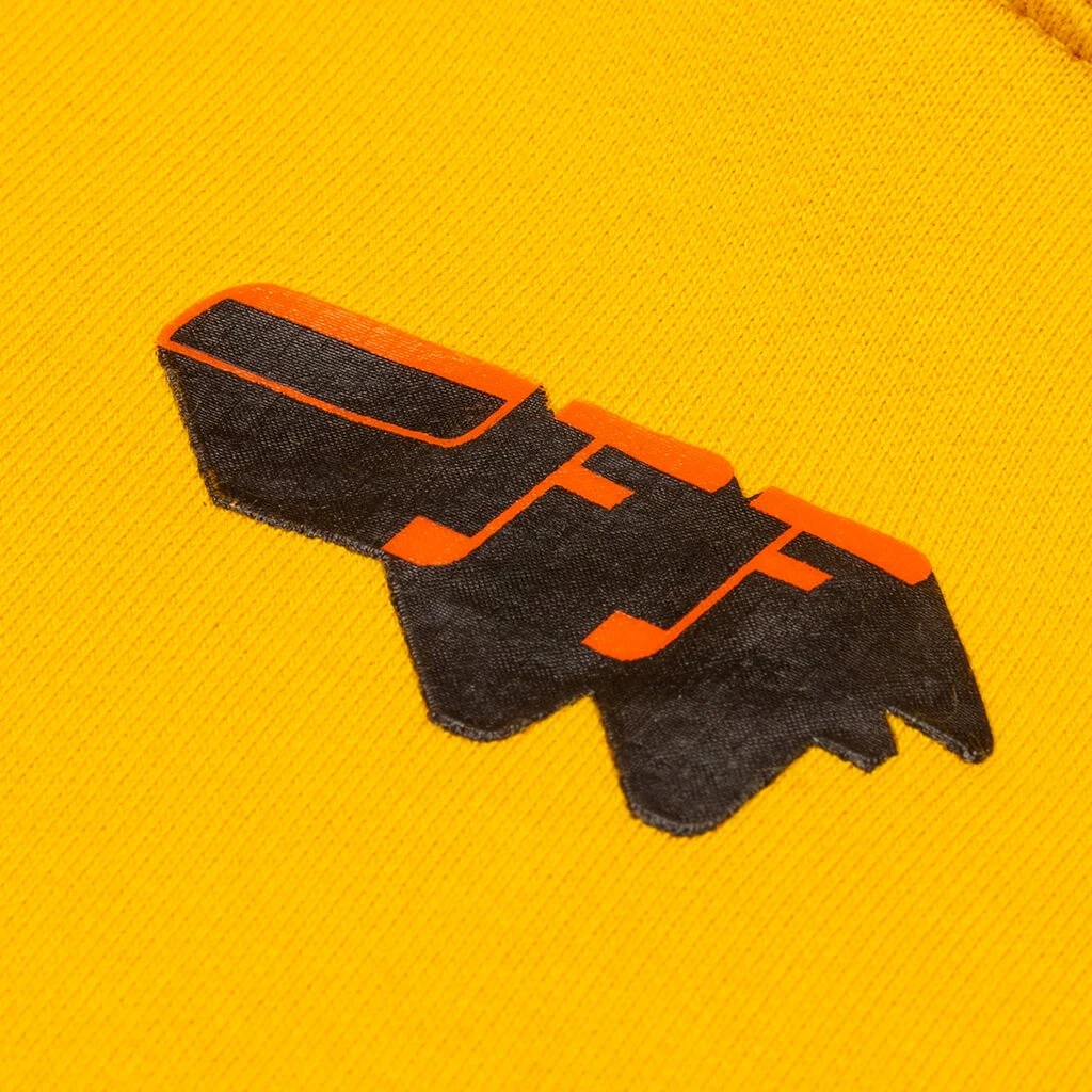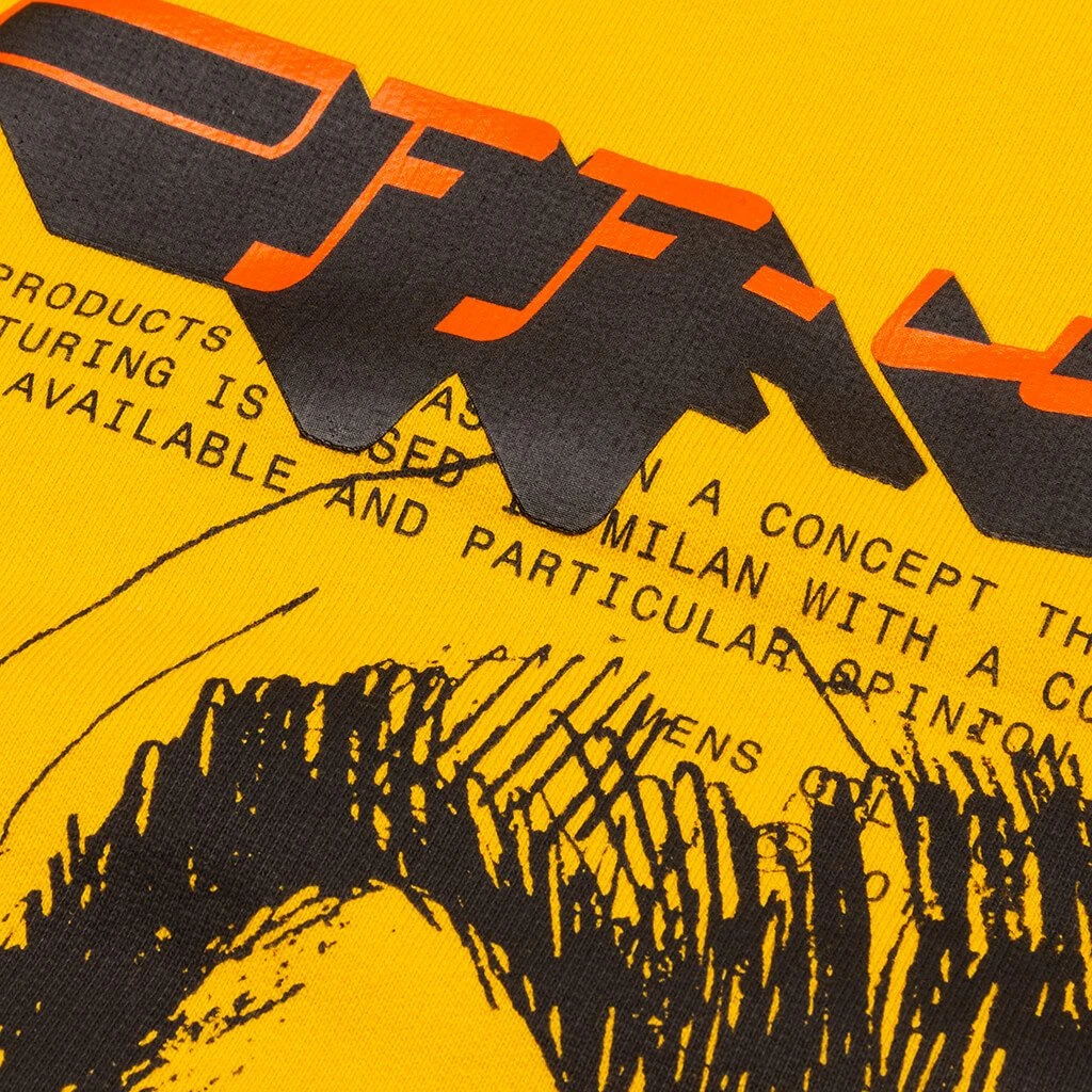 Off-White c/o Virgil Abloh is a fashion label rooted in current culture at a taste-level particular to now. Manufacturing is based in Milan with a core value of the brand to be made from the best available and particular opinion regarding fabric, fit and fabrication. Pictured is the Off-White c/o Virgil Abloh Mirko Artist Over Hoodie in Yellow/Black.