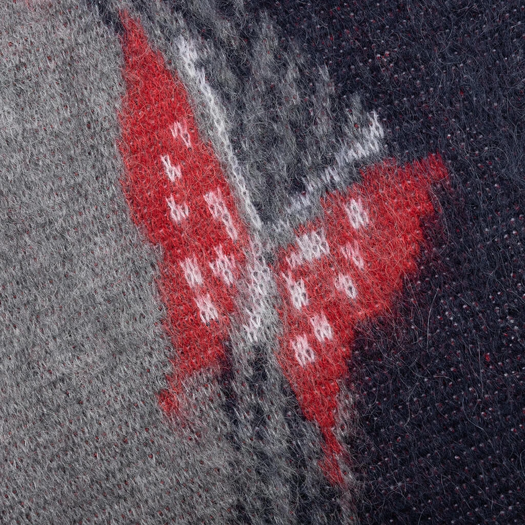 Add a new cardigan to your collection with the Needles Mohair Cardigan Papillon. Cut from mohair, the silhouette takes on a front button closure in addition to a v-neckline. Ribbed detailing resides at the cuffs and hem, while the paneled construction offers further dimension. The intarsia graphics complete the design.