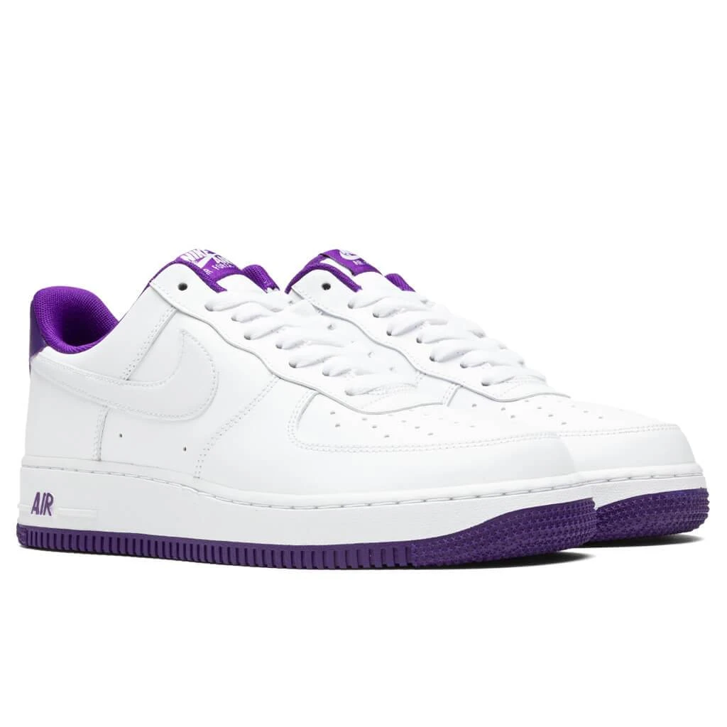 The legend lives on in the Nike Air Force 1 ’07—a modern take on the iconic AF1 that blends classic style with fresh details. Crisp leather edges and classic colors create a cleaner, more streamlined look that pairs well with any outfit. Pictured is the Nike Air Force 1 ’07 in White/Voltage Purple.