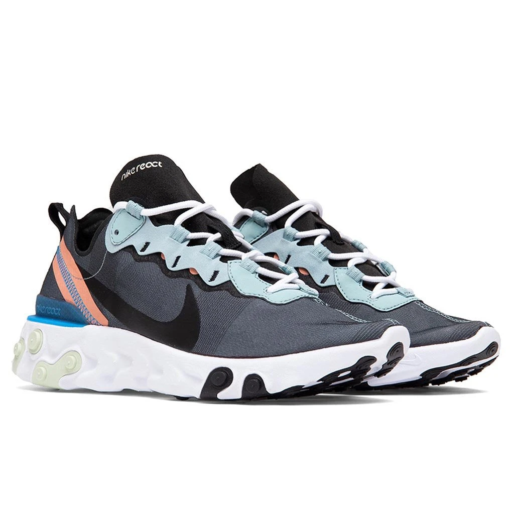 Borrowing design lines from heritage Nike running shoes such as the Internationalist, the Nike React Element 55 Men’s Shoe embraces history and pushes it into the future. Nike React foam delivers lightweight comfort, while rubber outsole pods and reflective details offer a cutting-edge look that begs a reaction. Pictured is the Nike React Element 55 in Ocean Cube/Blue Hero.