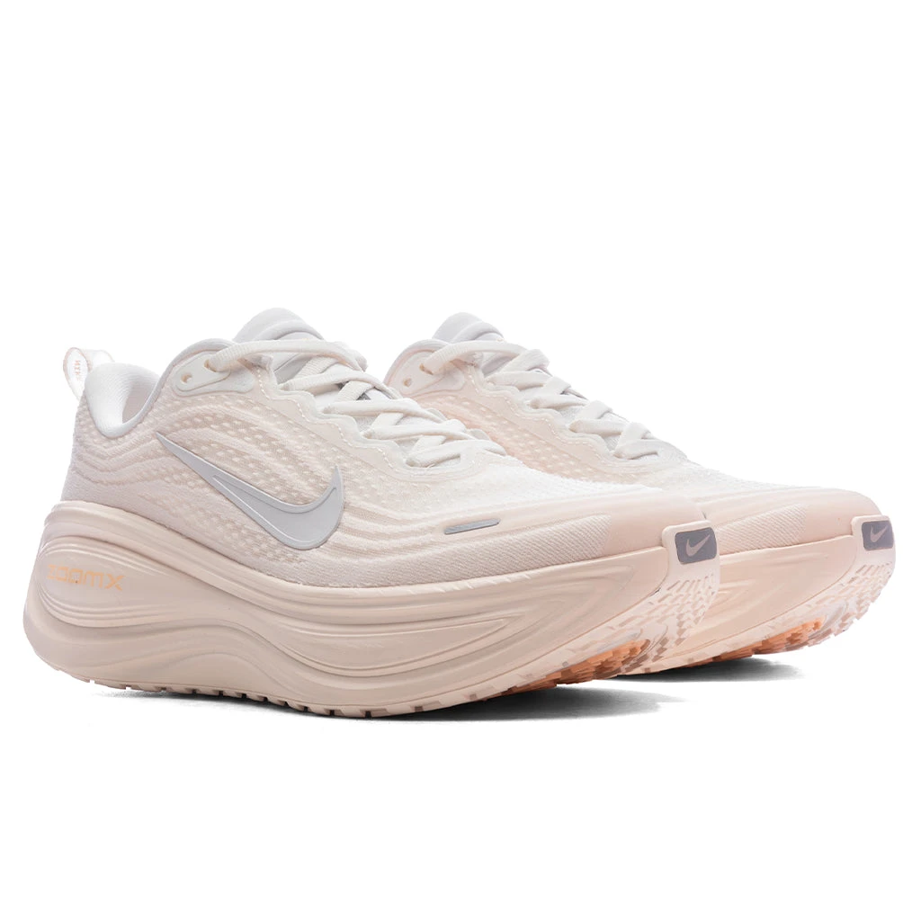 The Women’s Nike Vomero Plus arrives in a Guava Ice, Sail, and Orange Chalk, balancing neutral tones with technical innovation. Built for the road, the runner features an engineered soft mesh upper for breathable comfort, paired with a high-abrasion rubber outsole for long-lasting traction and reflective details for visibility. A full-length ZoomX foam midsole delivers ultra-responsive cushioning, creating maximum energy return with every stride.