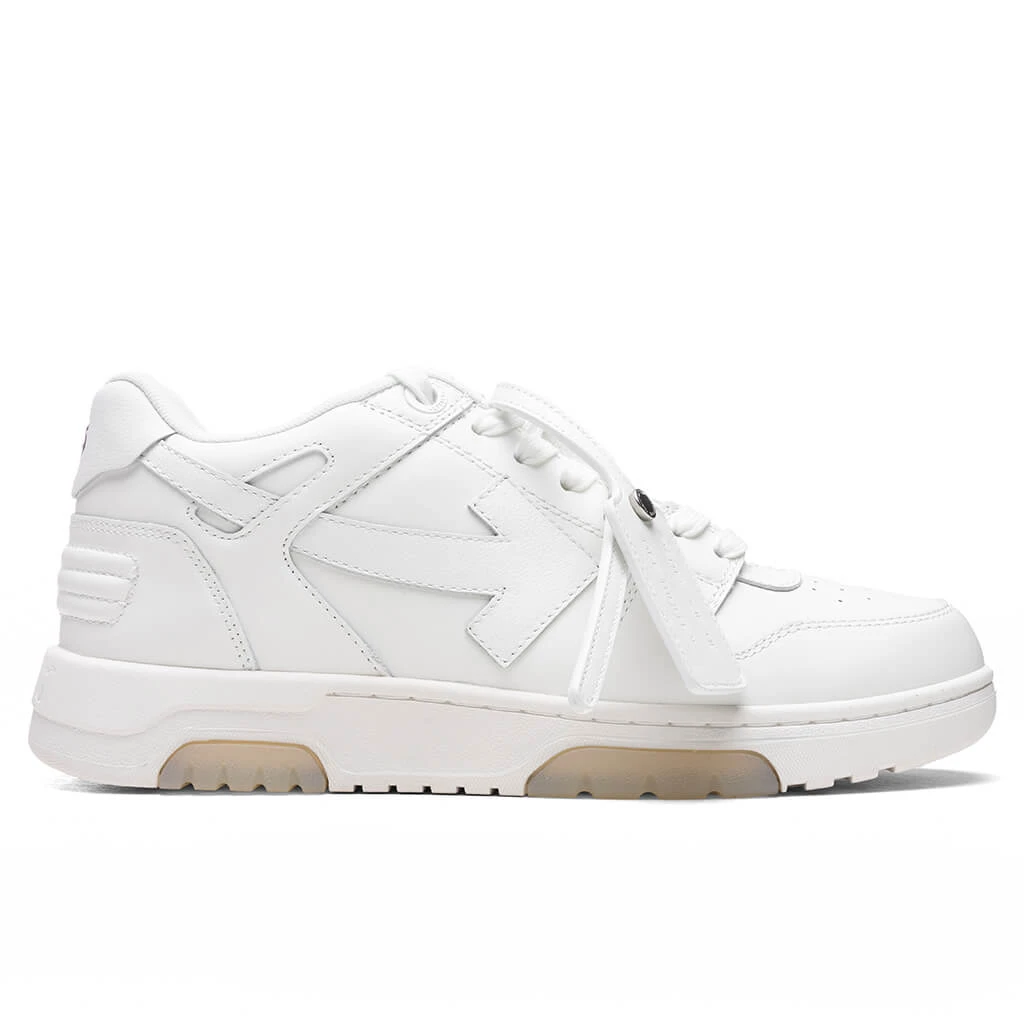 The Off-White Out of Office Calf Leather elevates any sneaker collection. Featuring a leather upper, the silhouette incorporates a zip tie tag at the cotton laces. An embroidered leather arrow motif makes a statement at the sides, while the perforated toe box adds a breathable touch. The rubber outsole underneath protects the rest of the silhouette.