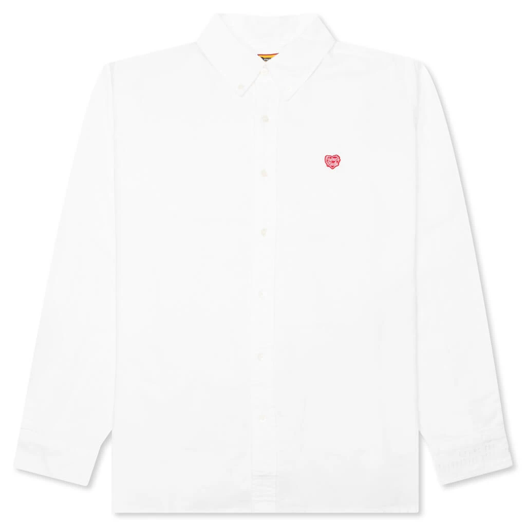 Made from cotton, the Human Made Oxford B.D L/S Shirt makes an impression on any wardrobe with its heart logo patch at the chest and embroidered logo on the left front and left sleeve. A button-down closure is placed in addition to a pointed collar and barrel cuffs.