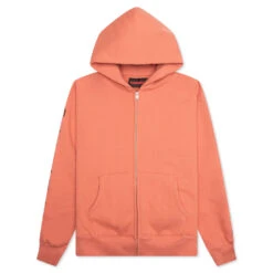 The OE Zip Up Hoodie in Rust combines comfort with an effortless aesthetic. Made from soft cotton, this hoodie features a full-zip closure, front pockets, and tonal branding for an understated finish.