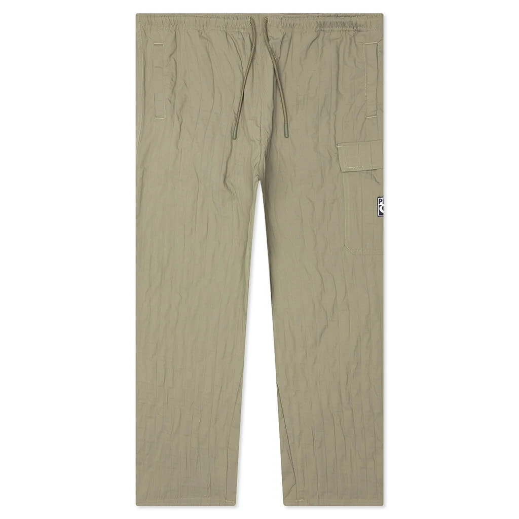 The Rescue Pleated Cargo Pants from Pleasures are composed of polyester and nylon and feature an elasticated waistband with an adjustable drawstring. This style features a cargo-style pocket at the thigh as well as side-seam pockets and a back welt pocket. The all-over lined texture adds dimension to the look.