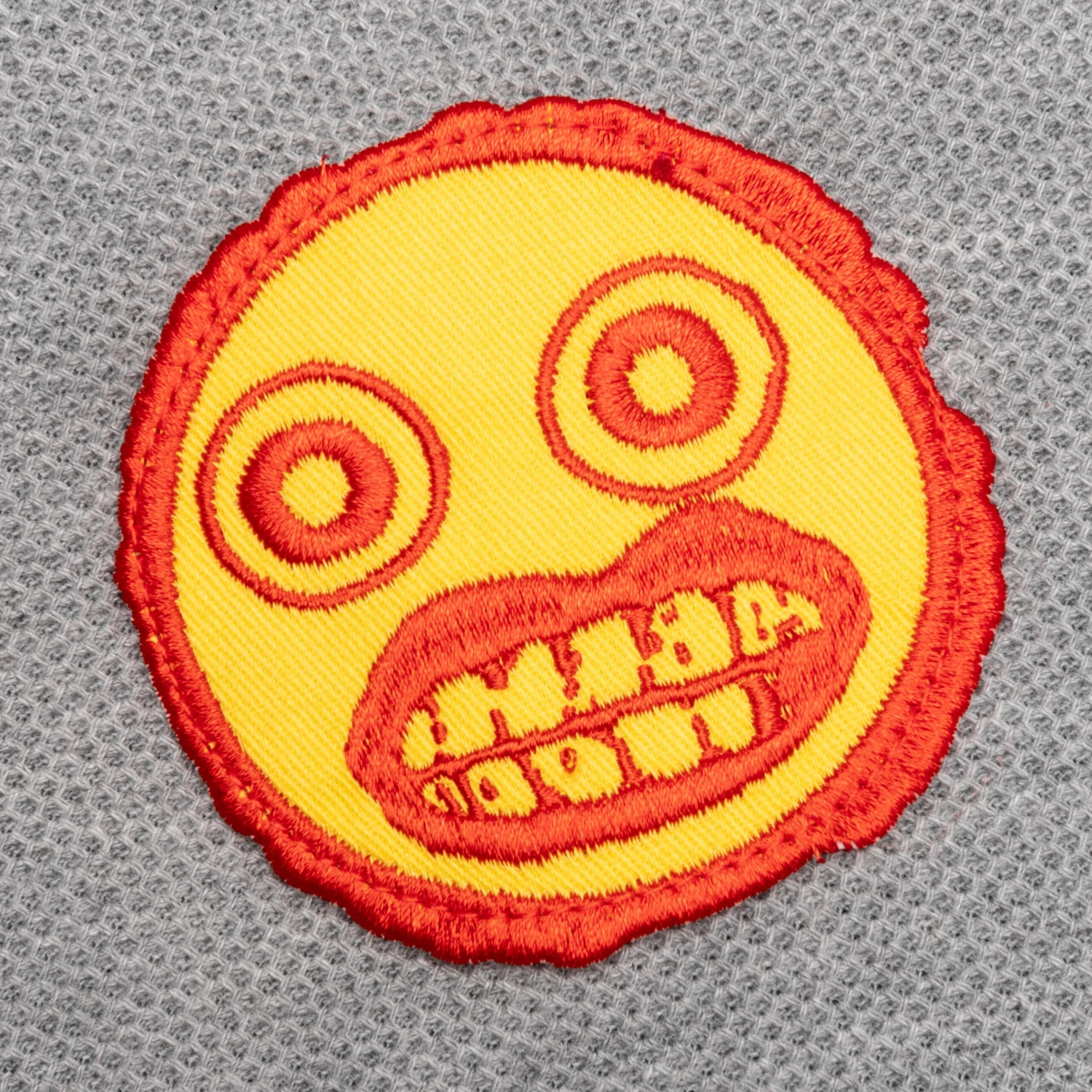 - Mixed print, embroidery, and patch artwork throughout