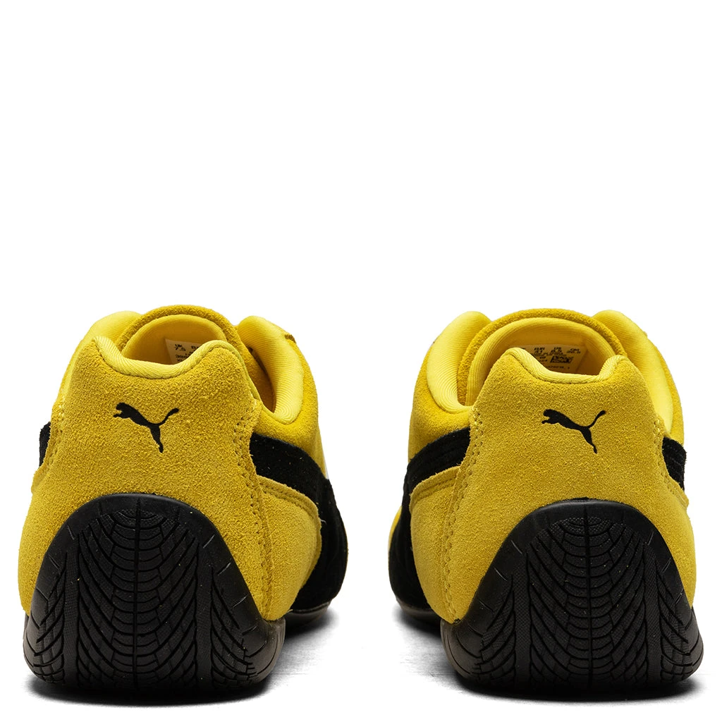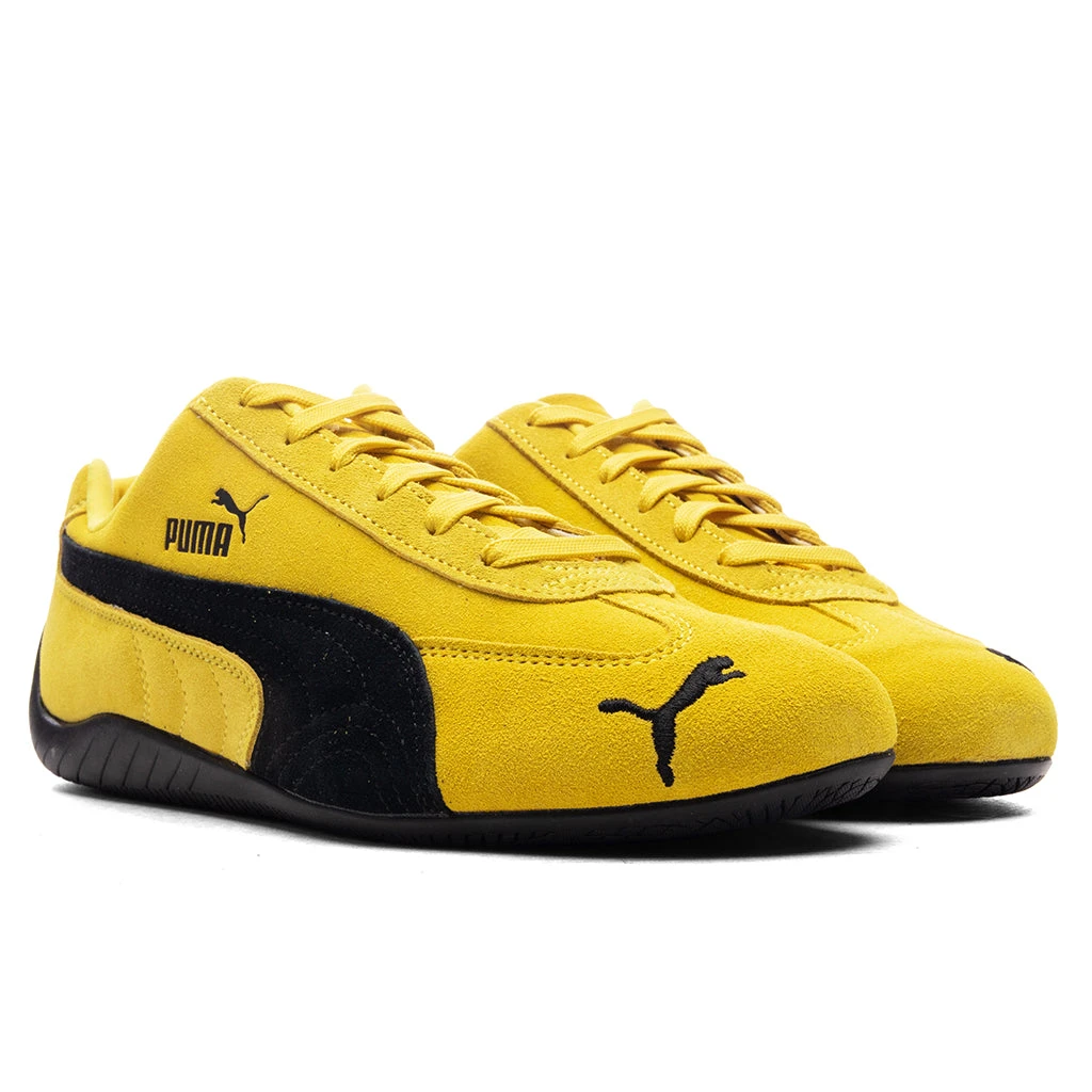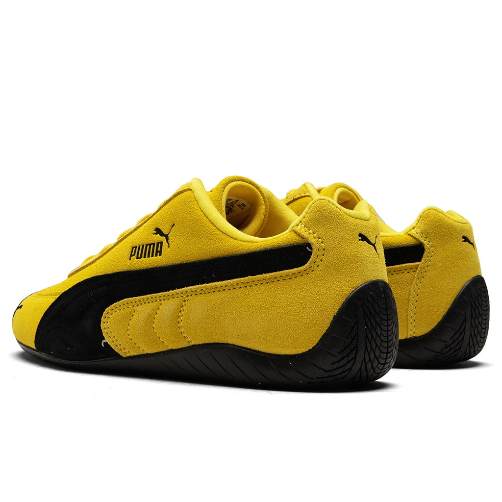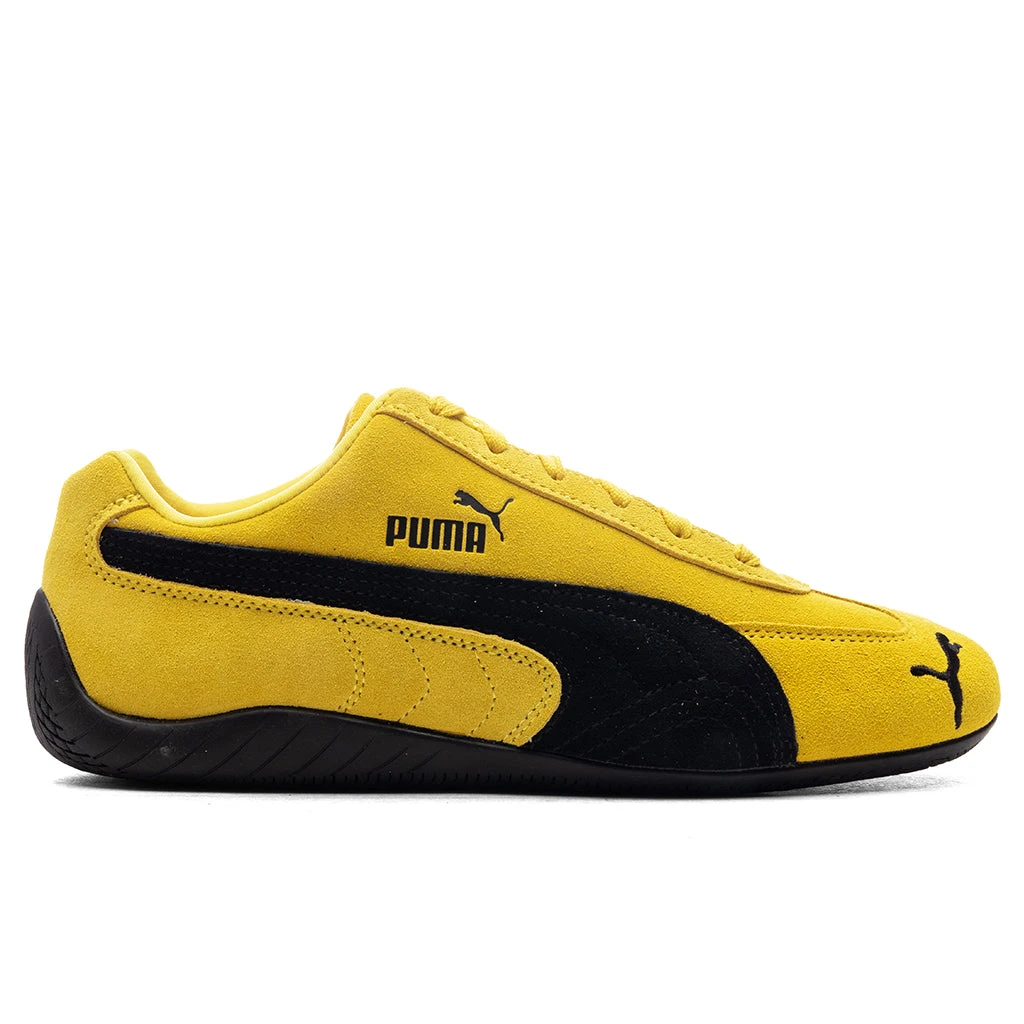 The Speedcat OG in Pele Yellow/Black offers a classic motorsport-inspired design with a modern edge. Crafted with a suede upper, this sneaker features embossed and embroidered branding for subtle detailing. A textile lining ensures comfort, while the rubber sole provides durable traction. Perfect for casual wear with a sleek, sporty vibe.