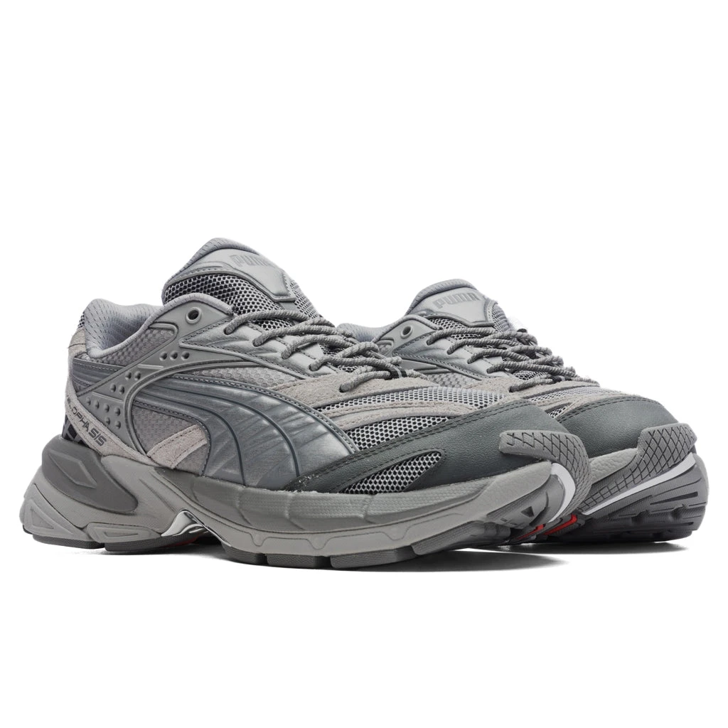 To celebrate racing’s biggest stage coming to Las Vegas, FEATURE has teamed up with PUMA to create the latest Velophasis iteration. The ‘FEATURE 1’ sits at the intersection of fashion and sports. The sneaker arrives in a monochromatic gray colorway that pays homage to the chassis of an open-wheel race car, matching the vehicle’s carbon body and titanium components. Additional details include multiple sets of laces inspired by livery color stories, a unique footbed with the Las Vegas track outline, and a custom box resembling the blueprint of making a race car. Each pair comes with a clear PVC bag that allows the wearer to transport the sneaker easily to events. This custom PUMA x FEATURE Velophasis was designed to support some of racing’s biggest teams.