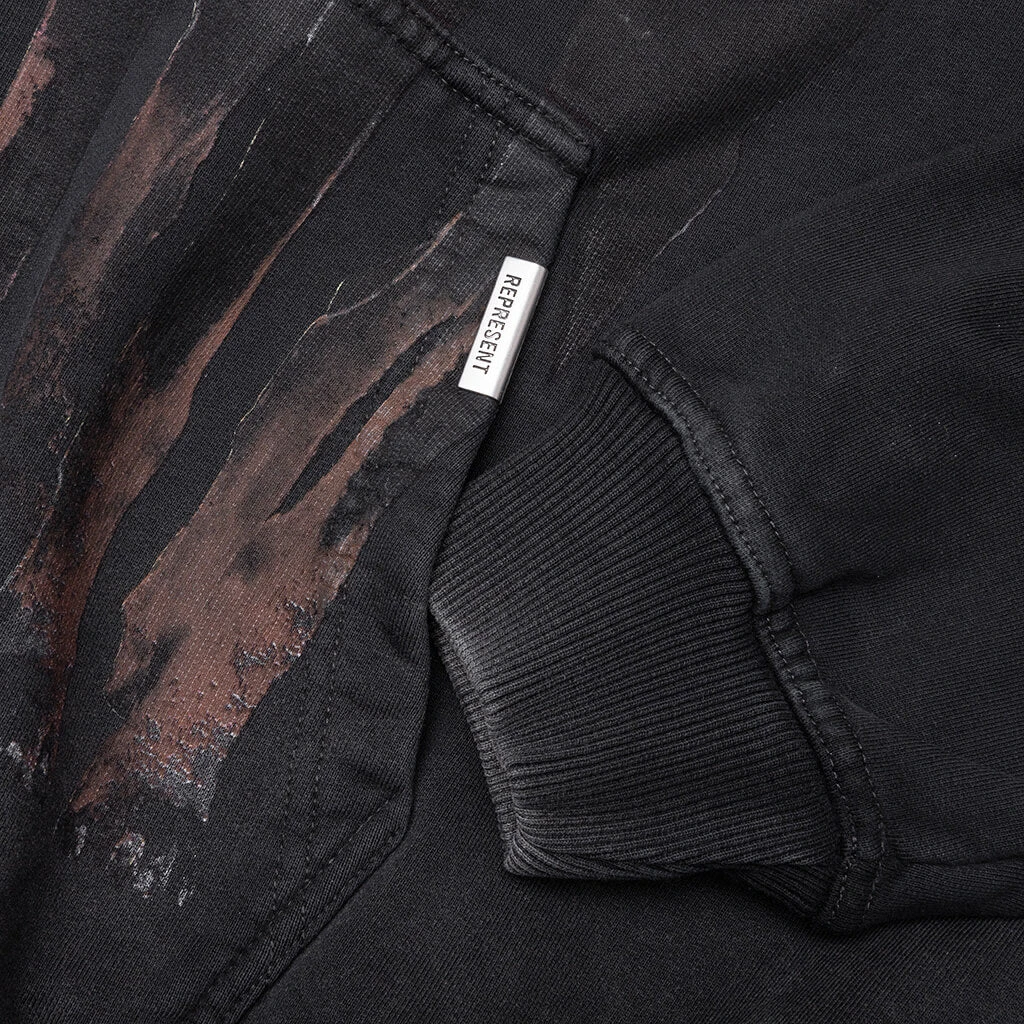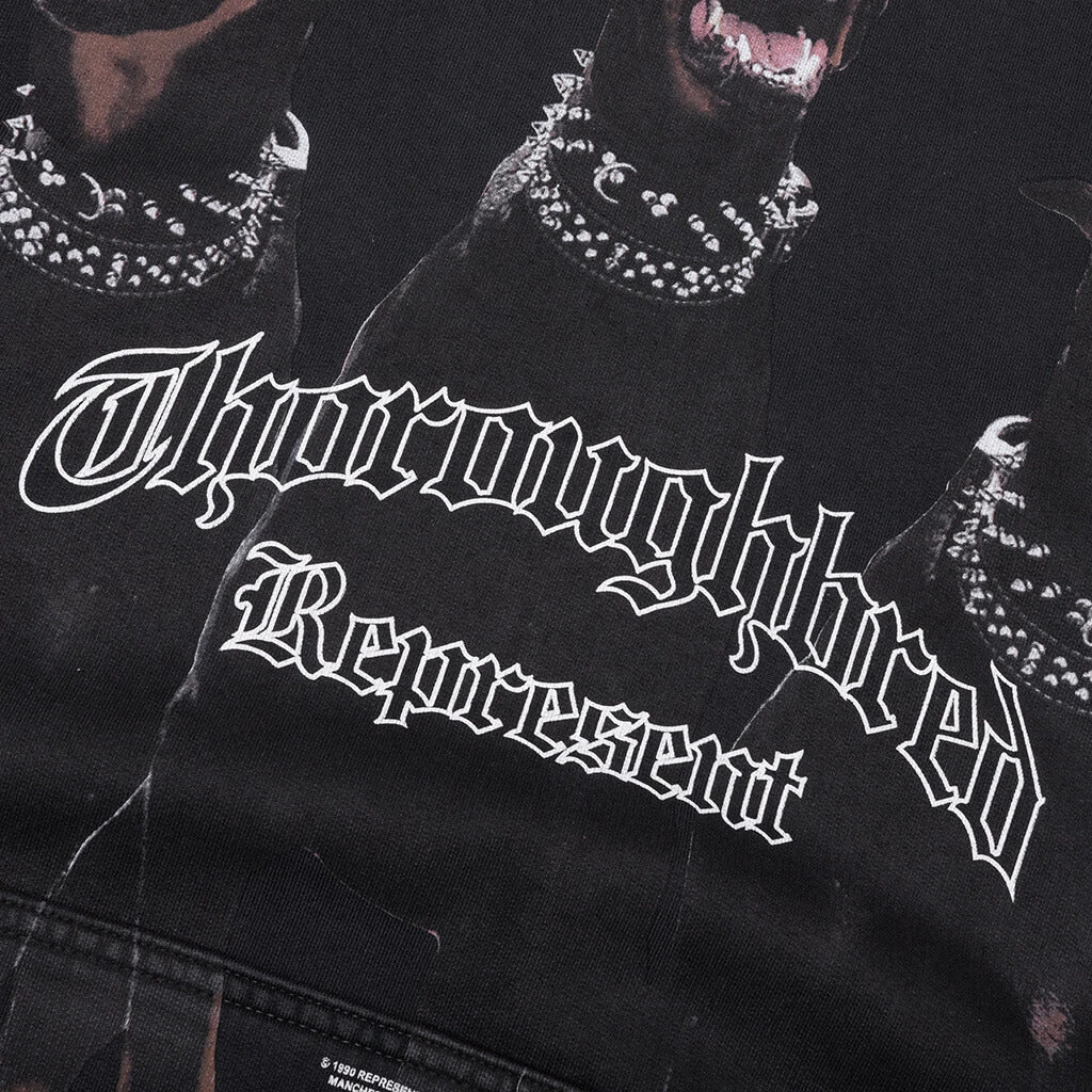 The Thoroughbred Hoodie from Represent is composed of 100% heavyweight 480 GSM cotton and has an oversized fit. This piece is pre-shrunk and has been piece dyed for a custom look. Screen-printed graphics on the front highlight the design. Technical details like the attached collar, kangaroo pocket, and ribbed trims complete the look.