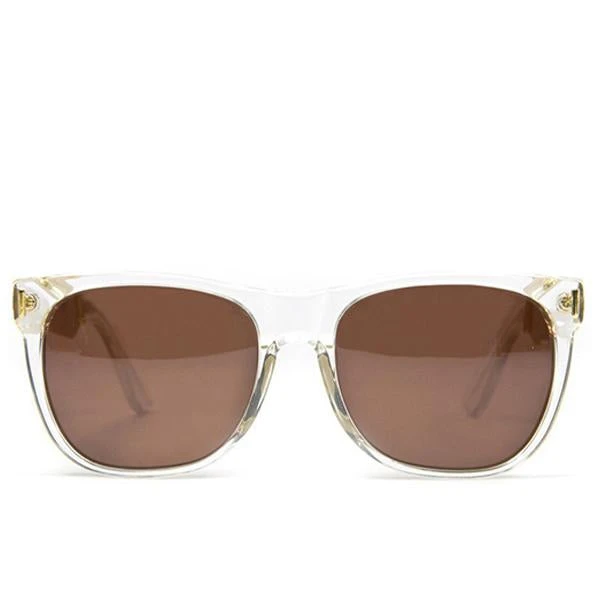Daniel Beckerman created RetroSuperFuture to display his modern take on eyewear. The Classic Francis Crystal is characterized by some of the most visually appealing Super elements. These sunglasses feature a crystal acetate for the front, gold metalwork, and gold hardware for the arms.