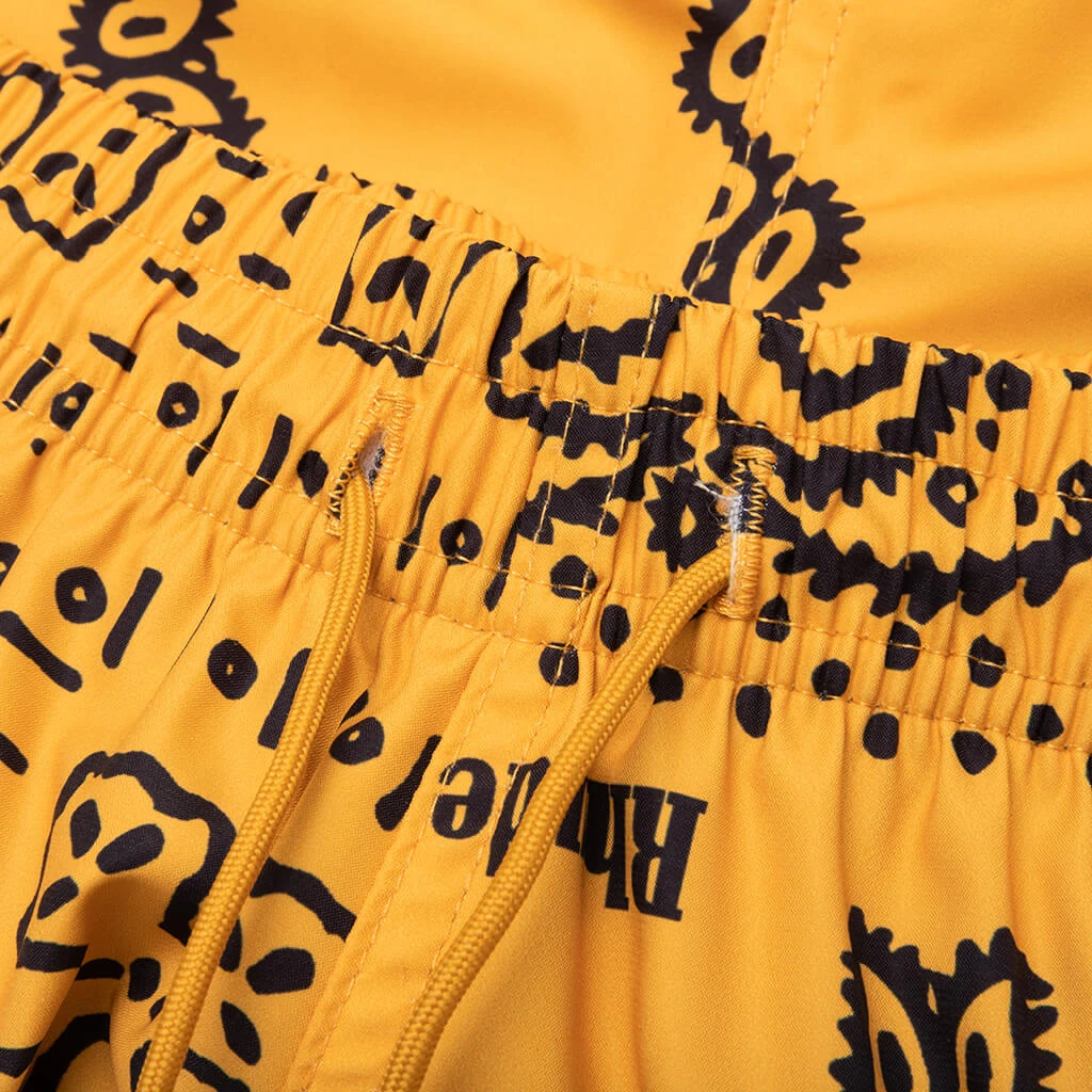 The Rhude Signature Swim Trunks make an impression on any apparel collection. Composed of nylon, the shorts feature signature exaggerated front drawstrings at the elastic waistband. Side pockets, a rear pocket, and an all-over print and printed logo branding completes the look.