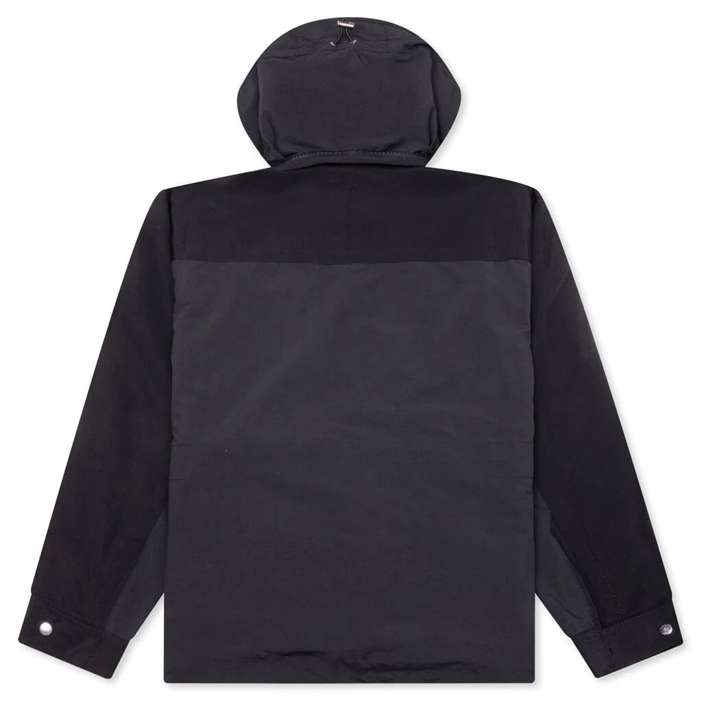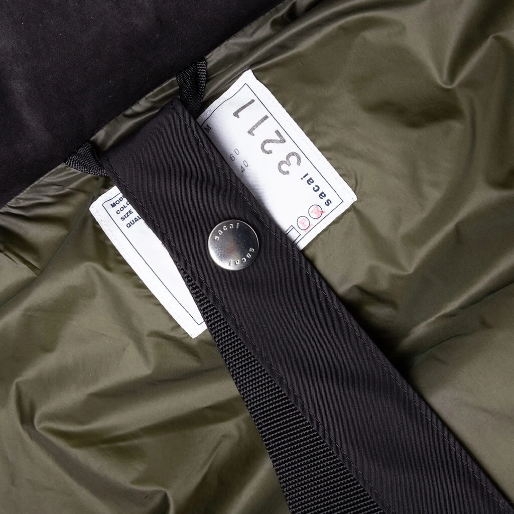 Unveiling versatility, this Sacai reversible jacket merges functional details seamlessly. One side showcases cargo pockets at the chest and sides, complemented by a zip hideaway hood within the mockneck. The other side features a two-toned sleek silhouette with long sleeves, banded cuffs, chest flap pockets, and side flap pockets. A drawstring hem, front zip closure, and the blend of 100% polyester and a reverse of 60% cotton/40% nylon epitomize Sacai’s commitment to innovative design.