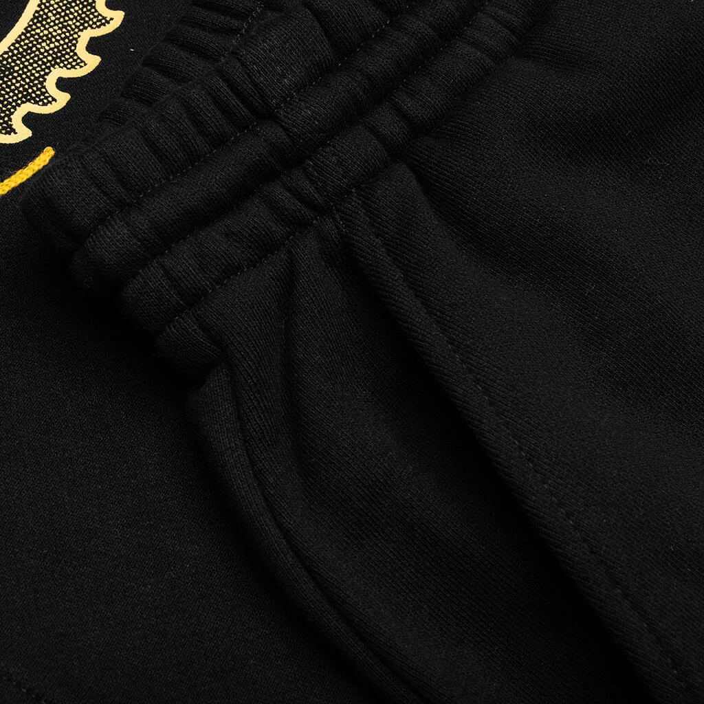 The Scoop Sweatshorts in Black from ICECREAM are crafted from cotton French terry. Featuring a combination of screen-printed and embroidered designs, these shorts come with side seam pockets for convenience. The elasticized waist with a drawstring ensures a secure and adjustable fit, while a woven label adds a finishing touch.
